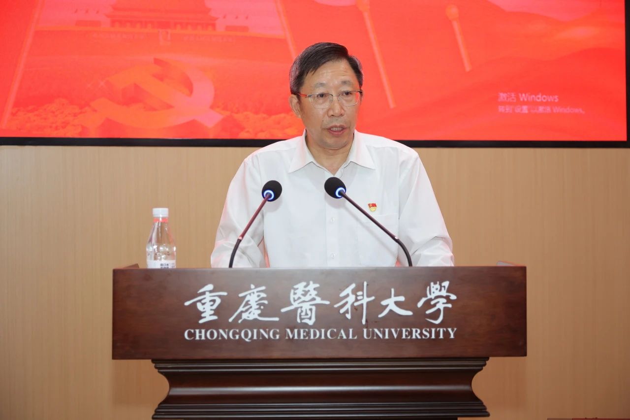 全国高校党建工作样板支部代表、附属儿童医院儿研所党支部书记黄道超,优秀共产党员代表、附属第二医院心血管内科副主任陈国柱,优秀党务工作者代表、附属永川医院派驻石柱县桥头镇马鹿社区第一书记吕治全,新党员代表、公共卫生学院2021级公共卫生专业硕士研究生王玉洁,先进基层党组织代表、附属第一医院党委书记吴昊分别上台发言,分享党建工作的做法成效与经验感悟。