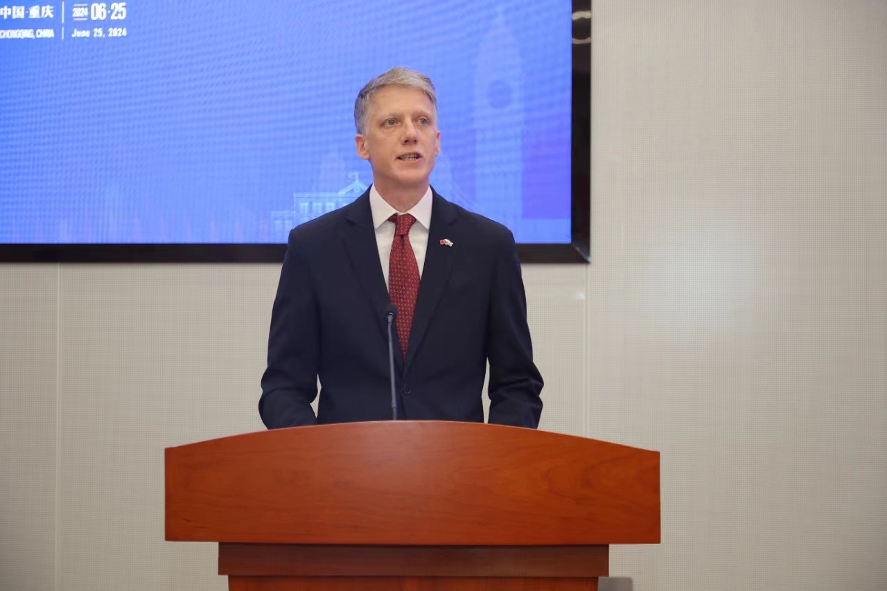 张国智对联合学院的成立表示热烈祝贺,祝此次中外合作办学工作取得圆满成功。她在致辞中表示,习近平总书记指出,教育、科技、人才是全面建设社会主义现代化国家的基础性、战略性支撑,要按照发展新质生产力要求,畅通教育、科技、人才的良性循环。习近平总书记高度重视重庆发展,赋予了重庆打造新时代西部大开发重要战略支点、内陆开放综合枢纽“两大定位”,为重庆发展带来了重大历史性机遇。重庆市与莱斯特市友谊源远流长,1993年双方缔结为友好城市,并共同大力支持AB平台开展中外合作办学和联合学院的建设工作。她指出,此次联合学院的成立将为我国医学教育教学的国际化改革,特别是内陆医学教育开放高地建设提供有益经验,希望双方进一步加强务实合作,聚集国际优秀人才资源,助力重庆打造内陆开放高地。