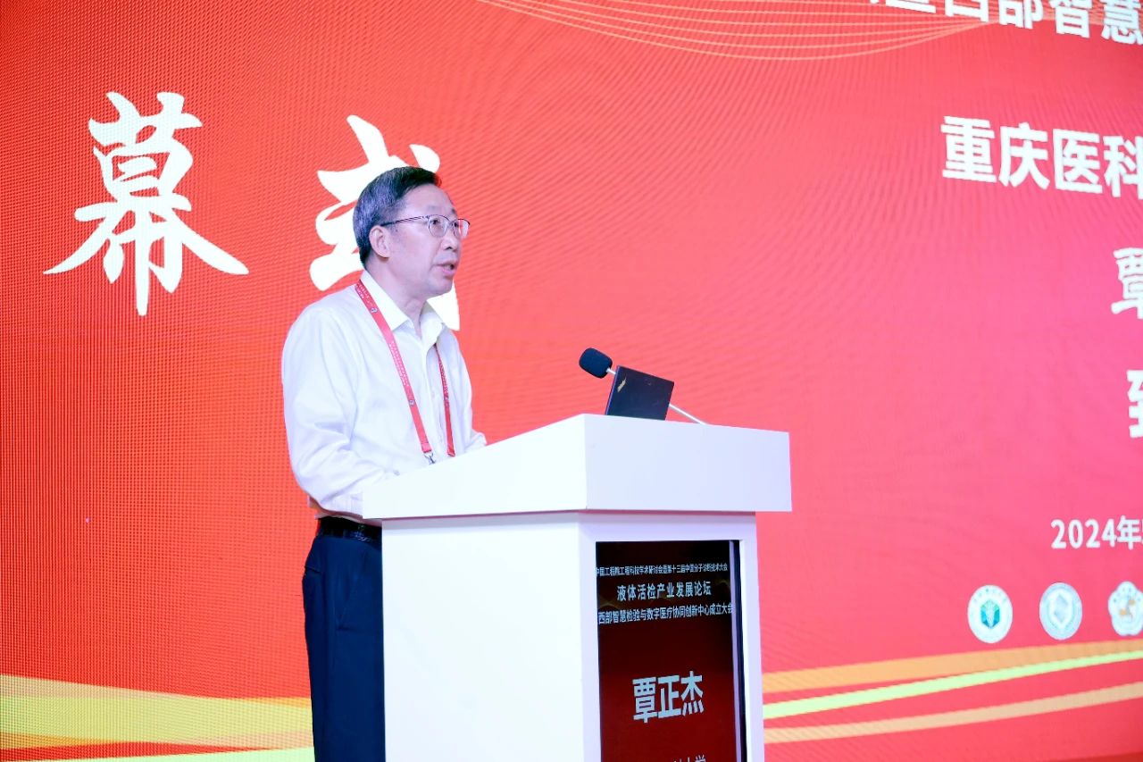 戈帆在致辞中表示,重庆医学科技创新发展的前景广阔,医学科技工作大有可为,市科协将积极链接资源,推动创新链、产业链、资金链、人才链“四链”深度融合,为服务医学科技创新汇聚科技和人才力量。本次论坛聚焦分子诊断、液体活检,邀请了全国相关领域的代表出席,衷心期待各位专家、学者和业界翘楚分享真知灼见,为科技和生命科学领域深度融合和蓬勃发展贡献智慧,为成渝两地共建西部科学城、打造具有全国影响力的科技创新中心提供有力的科技支撑。希望西部智慧检验与数字医疗协同创新中心的成立,能够汇聚重庆市相关领域专家、学者、技术人员的科技成果,为推动智慧检测与数字医疗高质量发展、提升重庆在生物医药领域的创新能力,促进发展新质生产力做出贡献。