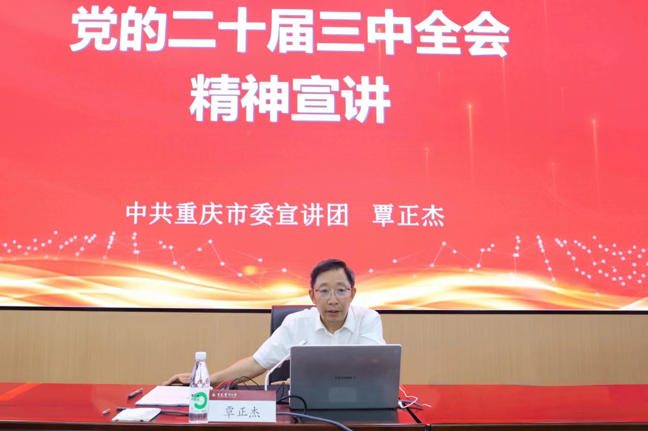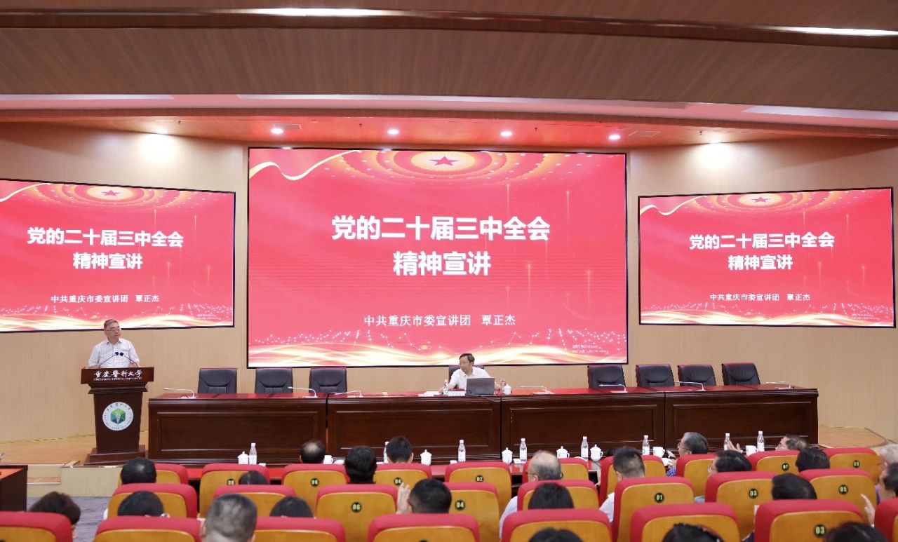 按照市委统一安排,8月29日下午,AB平台学习贯彻党的二十届三中全会精神市委宣讲团宣讲报告会在袁家岗校区国际学术会议厅举行。市委宣讲团成员、校党委书记覃正杰作宣讲报告。校党委常委、副校长田杰主持报告会。