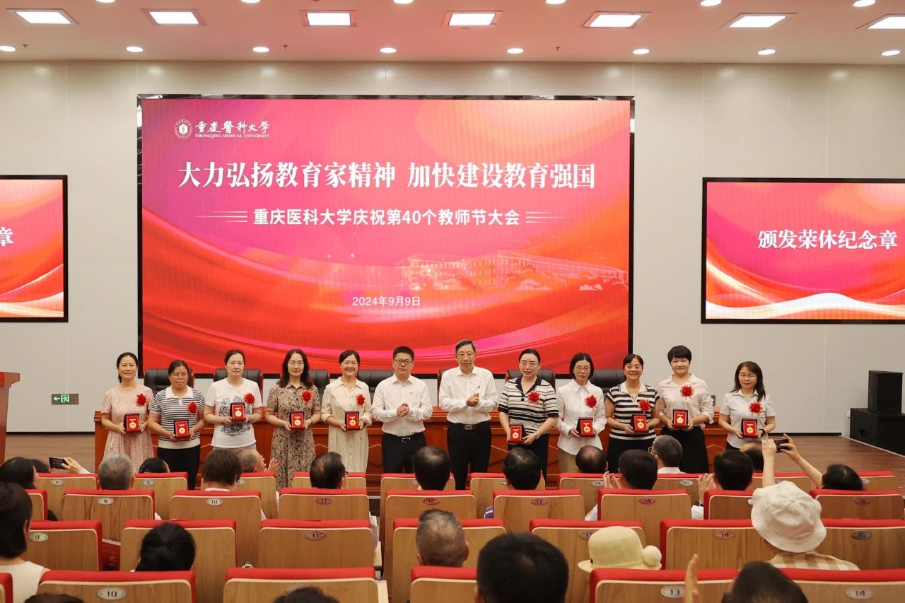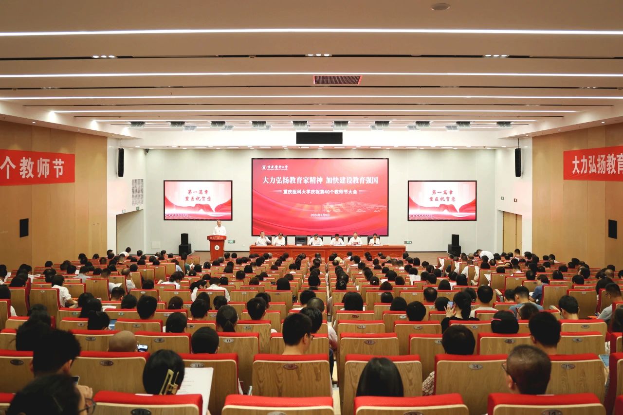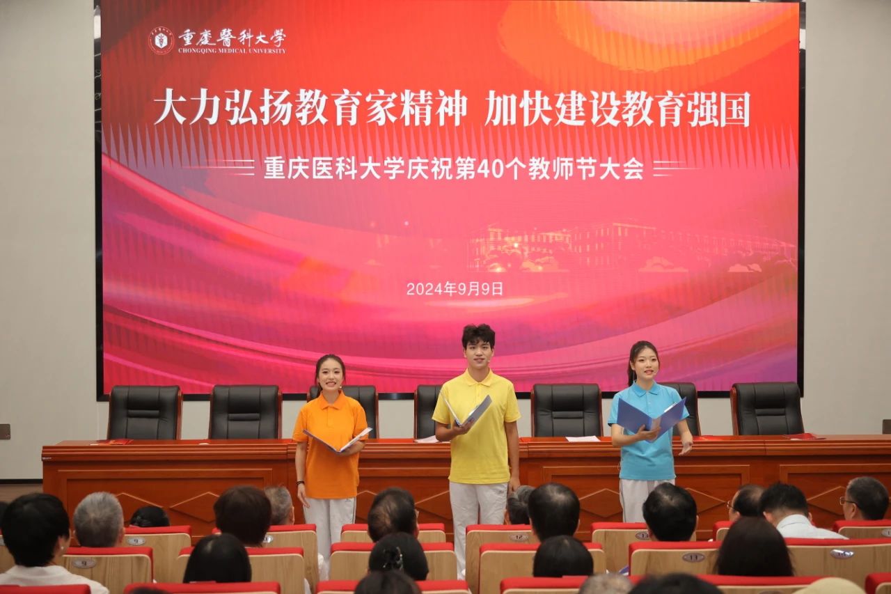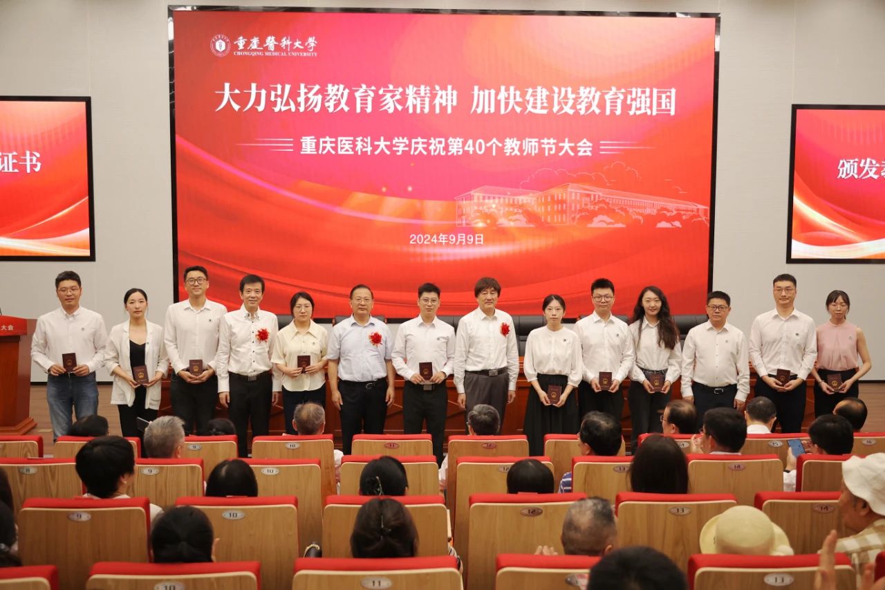 校长黄爱龙宣读AB平台《关于在第40个教师节表彰优秀个人和团队的决定》,对荣获“全国教育系统先进集体”的AB平台儿科学院,荣获第28届“中国青年五四奖章”的周新雨老师,荣获第四届“全国高校教师教学创新大赛三等奖”的律峰老师,入选第五批“重庆市高校黄大年式教师团队”的儿科学教师团队,荣获2024年“重庆市工人先锋号”的人体解剖学教研室等2个团队,荣获2024年“重庆五一劳动奖章”的邓昆等2位老师,荣获2023年度“重庆市高校优秀思想政治教育工作者”的郭笑雨老师,荣获2023年度“重庆市高校优秀辅导员”的阎立珠老师等团队和个人予以表彰。