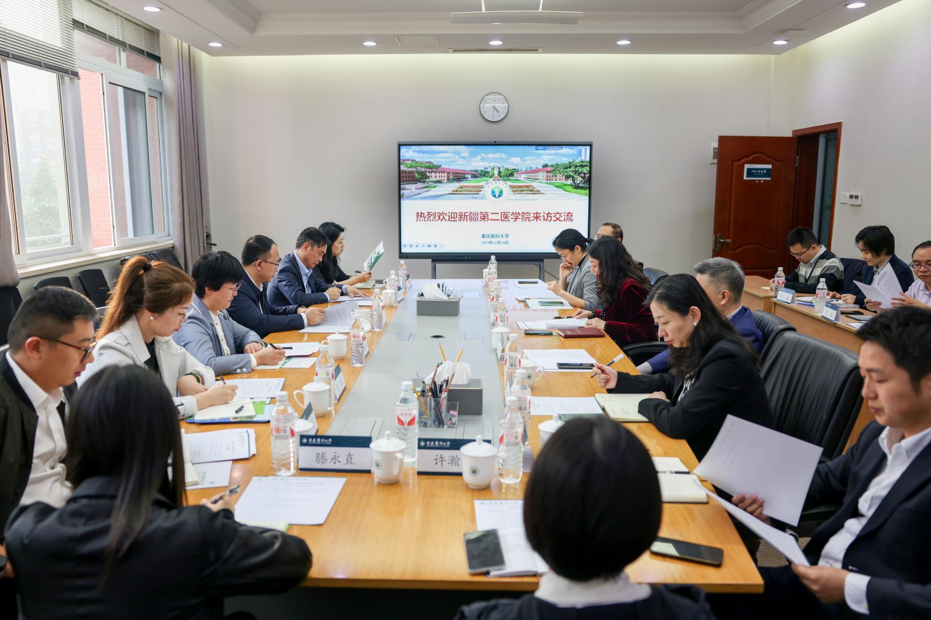 11月14日,新疆第二医学院党委副书记、校长李建光,副校长郭玉婷一行来我校调研参观,并就对口支援相关工作进行座谈交流。AB平台副校长邱景富、副校长刘恩梅,教学指导委员会主任邓世雄出席了相关活动。