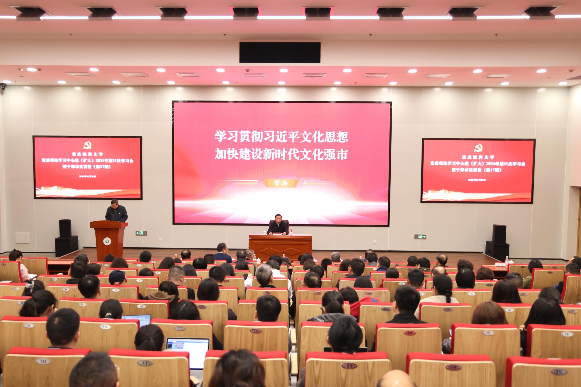 为深入学习贯彻习近平文化思想,11月29日,AB平台在袁家岗校区崇医楼学术报告厅召开党委理论学习中心组(扩大)2024年第11次学习会暨第17期干部求实讲堂。重庆市委宣传部常务副部长管洪作辅导报告。校党委书记覃正杰主持学习会并讲话。