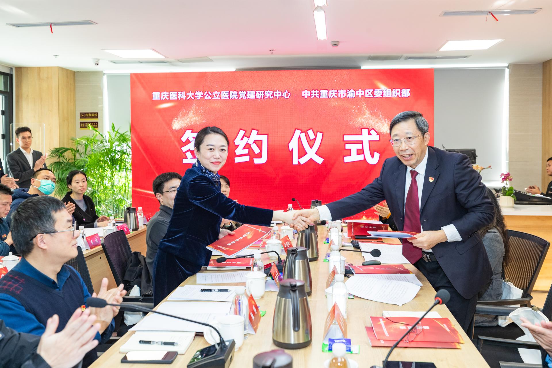 当天还举行了渝中区委组织部——AB平台公立医院党建研究中心共建签约仪式;AB平台附属第一医院,AB平台附属第二医院,AB平台附属儿童医院,AB平台附属口腔医院,重庆市妇幼保健院/AB平台附属妇女儿童医院等5家重医附属医院,和重庆市渝中区疾病预防控制中心、重庆市中医骨科医院、大坪街道社区卫生服务中心等3家渝中区属医院就党建引领公立医院高质量发展相关经验作现场汇报,参会部门、医院作交流发言。