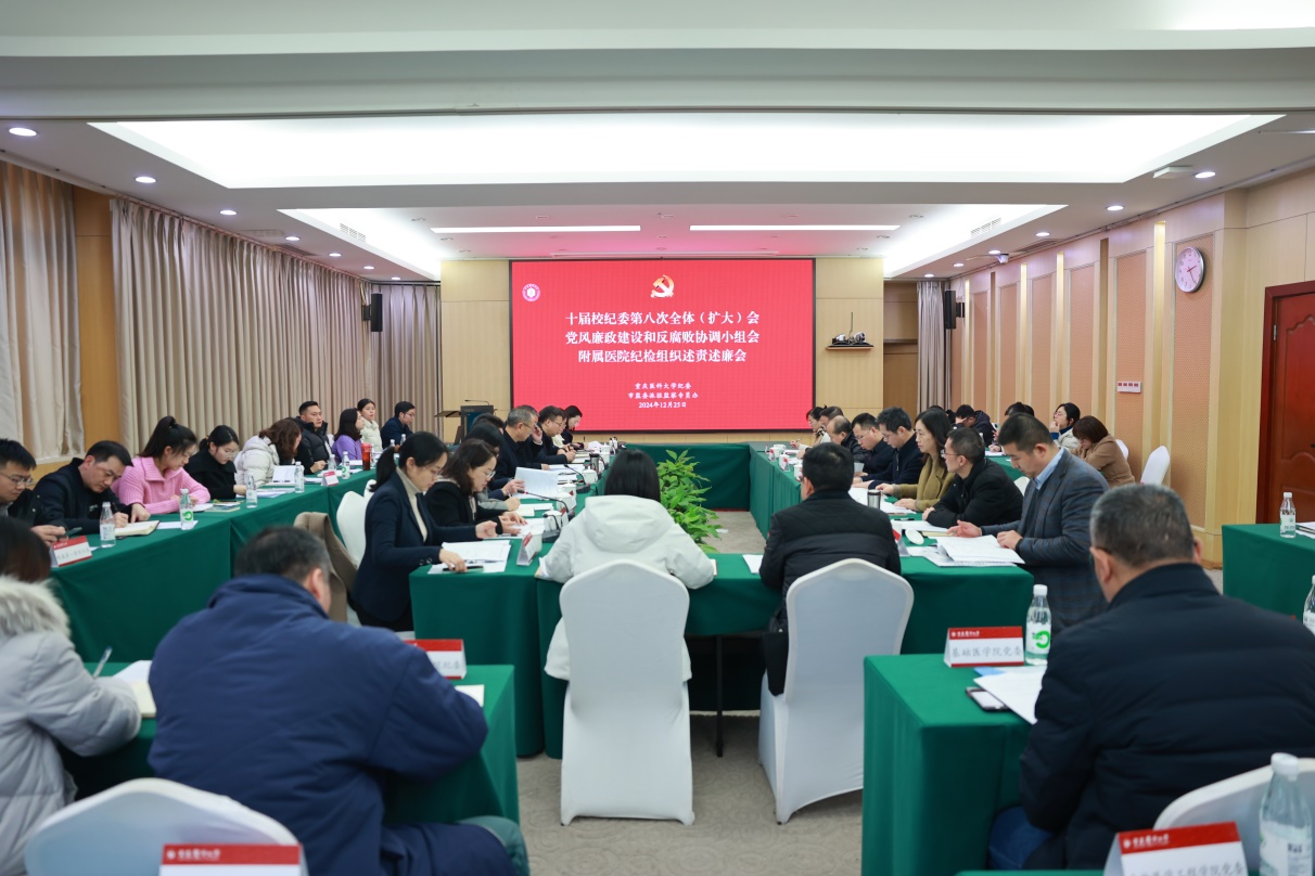 校纪委委员、校党委常委、副校长余华荣领学了2024年12月9日中共中央政治局关于推进党风廉政建设和反腐败工作的会议精神,会议传达了AB平台十届校党委第八次全体(扩大)会议精神,协调小组成员单位党委组织部、党委教师工作部、财务处、审计处分别交流了开展监督的情况及需提请协助的事项,八个附属医院纪检组织负责人依次作2024年述责述廉报告,校纪委向全会报告了AB平台2024年纪检监察工作开展情况。