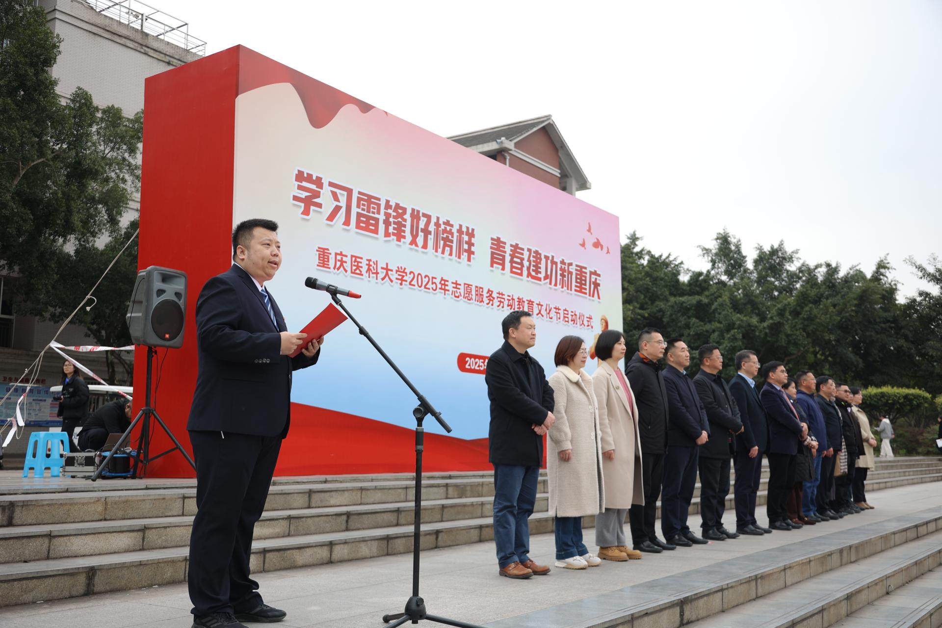 袁军在仪式活动上发表了热情洋溢的讲话。他充分肯定了AB平台志愿服务的丰硕成果,表示志愿服务活动不仅是AB平台社会实践育人的重要载体,更是学生践行社会主义核心价值观的关键途径,大家在实践中学会了感恩、责任与担当。他代表AB平台党政向长期投身志愿服务的师生致以崇高敬意,并提出了三点要求。一是要学史增信,深刻把握雷锋精神的时代内涵。全体重医师生要以雷锋为榜样,将践行社会主义核心价值观融入思想与行动,传承精神火炬,凝聚奋进力量。二是要守正创新,深度融入雷锋精神的历史厚度。希望大家继往开来,立足专业优势,科学规划实践项目,丰富服务内容,强化宣传保障,打造“重医特色”志愿服务品牌,在新时代拓展雷锋精神内涵,贡献重医智慧。三是要久久为功,不断绽放雷锋精神的璀璨光芒。师生们要在“大思政”课堂与时代浪潮中主动作为,携手共进,用青春志愿续写雷锋故事,用唯实争先锻造筋骨才干,用医者仁心守卫人民健康,为建功新重庆、构建和谐美好的社会贡献力量。