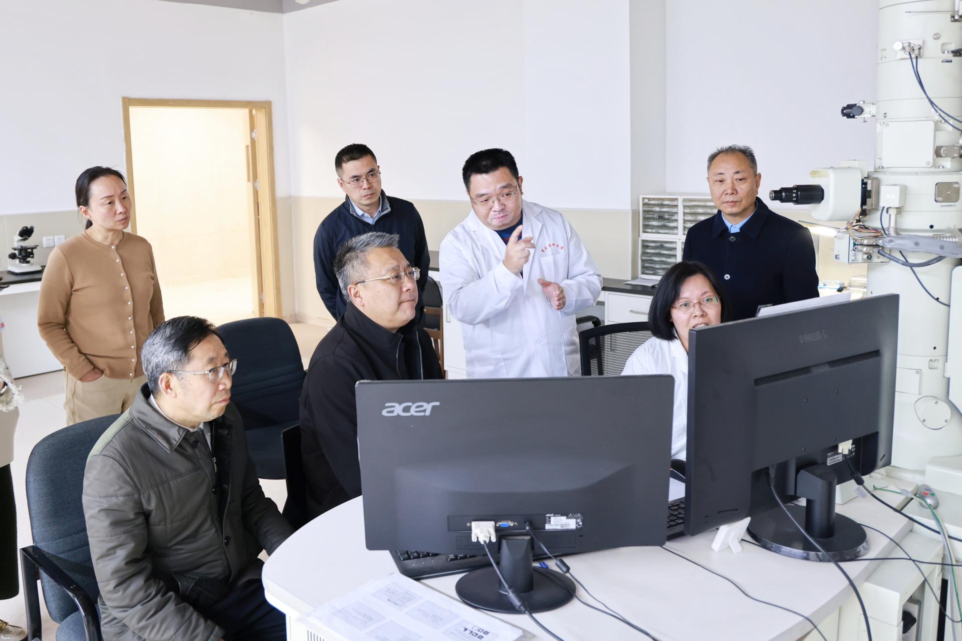 章榕一行实地调研了“人民至上 生命至上”主题展览、科创中心大型仪器设备共享平台、新靶标与化学干预教育部基础医学研究中心、省部共建超声国家重点实验室,对AB平台近年来立足自身优势深化医学教育改革创新、实施人才强校战略、建设高能级科技创新平台、深化产学研一体融合等给予了充分肯定,并希望AB平台持续发挥临床医学等特色学科优势,对标“双一流”建设标准,推动教学科研和医疗卫生事业高质量发展。