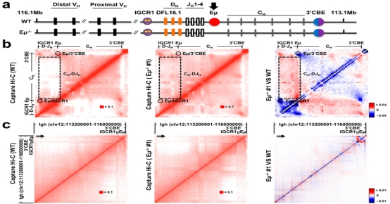 该研究以免疫球蛋白重链(IgH)结构域的stripe为研究对象,首次揭示了IgH结构域中增强子(Eμ)的多重功能:它不仅作为增强子调控基因表达,还能够作为边界(boundary)将相邻的两个子TAD(sub-TAD)分隔开。研究团队发现,当Eμ被敲除后,相邻的sub-TAD会发生融合,进一步证实了Eμ在维持染色质空间结构中的关键作用。此外,研究还表明,Eμ及其反义转录本(antisense transcript)能够促进3'CBE stripe的形成,而CTCF结合位点IGCR1则对这一过程起到抑制作用。值得注意的是,stripe的方向由CTCF的结合方向决定,但边界的形成仅依赖于CTCF的结合,而不受其结合方向的影响。这些发现为染色质三维结构的形成机制提供了新的科学视角,深化了我们对基因组空间组织调控的理解。