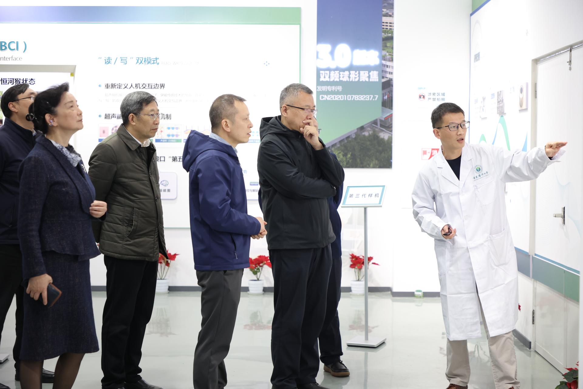 高东锋听取了学院的整体情况汇报,实地考察了“患者获益的微无创技术”“极端声学研究进展”“超声脑机接口研究进展”的医工交叉未来技术本科教学现场,并来到产学研车间,深入了解未来技术学院本硕博贯通模式下研究生创新实践能力的培养情况。高东锋对AB平台在医工交叉、医学未来技术人才培养及研发方面的探索和取得的成绩给予了肯定,希望AB平台继续深化医工融合、产教融合,培养更多创新人才,在学科建设、科研攻关和产教融合方面形成更多可复制推广的示范经验,为健康中国建设贡献智慧力量。