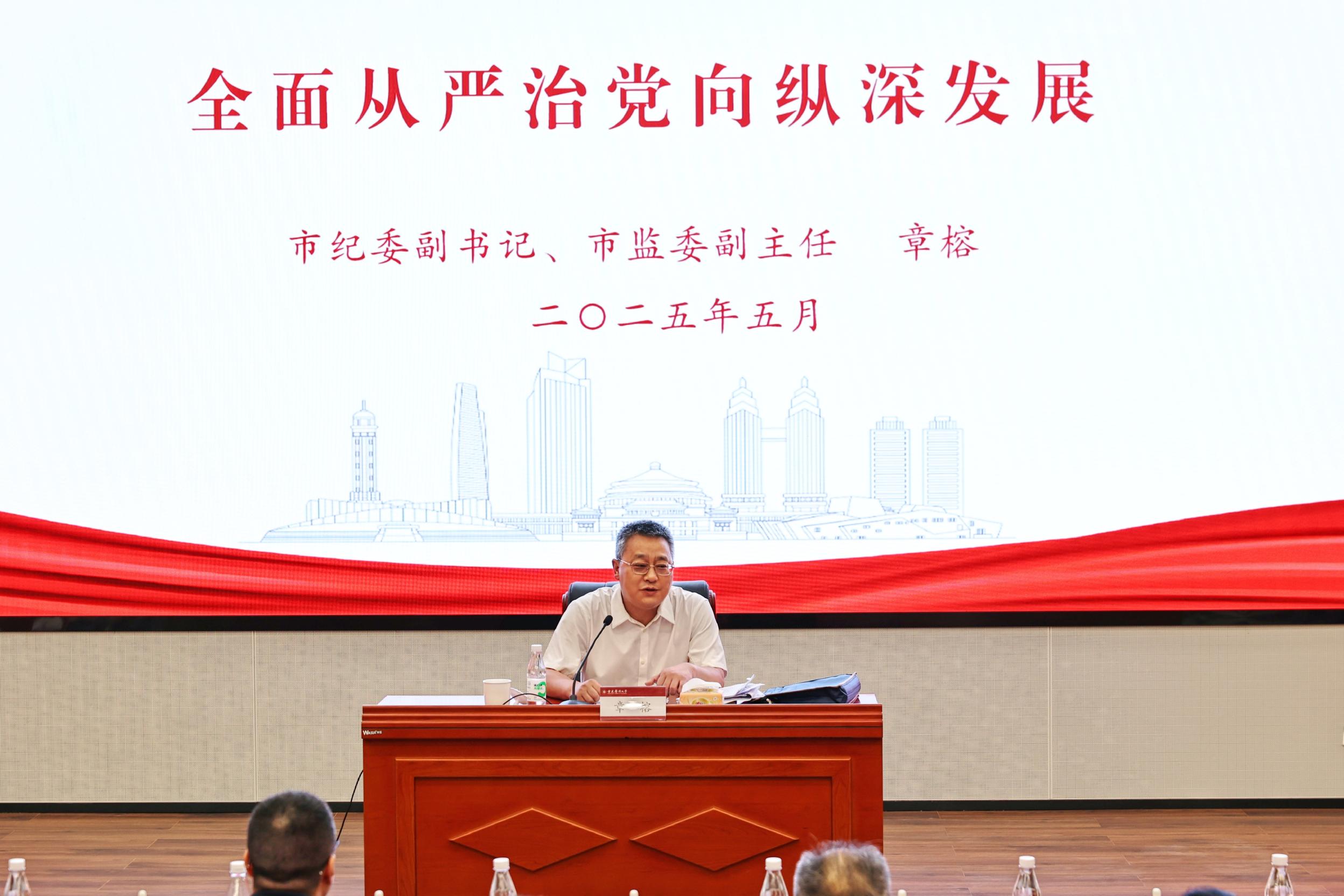 章榕以“保持严的基调,推动教育、医疗领域全面从严治党向纵深发展”为题,分别从“提高政治站位,准确把握全面从严治党的新内涵新要求”“坚持问题导向,深入剖析找准问题根源和违规行权典型表现”“突出‘质效提升’,聚焦‘五大行动’推进全面从严治党工作”三个方面进行深入阐述。他指出,要上好政治“课”、纪律“课”、清廉“课”,严格落实党组织主体责任、领导干部“一岗双责”、职能部门监管责任、纪检组织监督责任,全面深入查找落实中央八项规定及其实施细则精神方面存在的问题,持续推动全面从严治党向纵深发展。