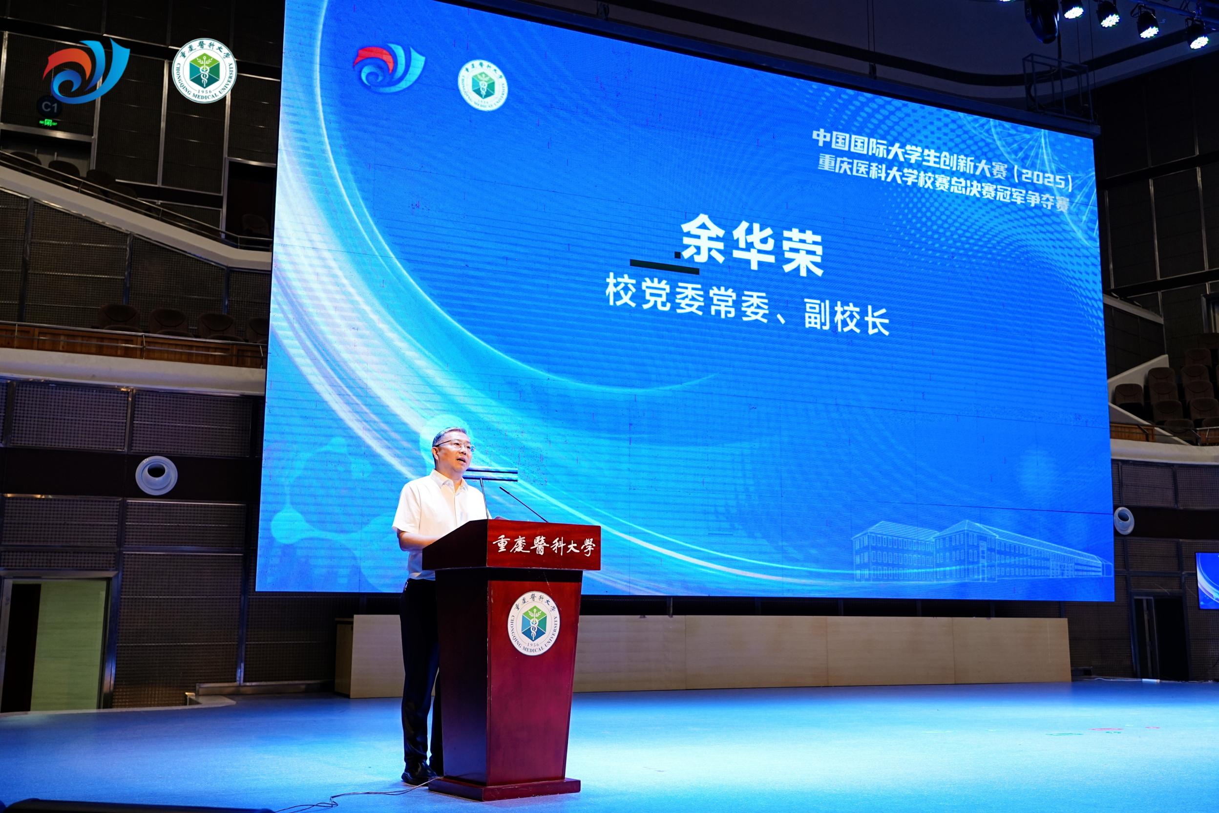 余华荣作大赛致辞,向6支冠军争夺赛参赛团队表示热烈的祝贺,向各学院、各职能部门老师的辛勤付出表达真诚的敬意。他表示,创新是推动医学教育发展的核心动力,AB平台将以大赛作为培养拔尖创新人才的重要平台,通过完善激励机制、优化赛事保障,实现“以赛促学、以赛促教、以赛促创”,不断优化升级医学人才培养路径,提升AB平台人才培养质量。他鼓励参赛团队以校赛为新起点,发扬科学家精神,持续打磨项目,为即将到来的市赛做好充分准备,展现重医学子“敢闯会创”的风采。