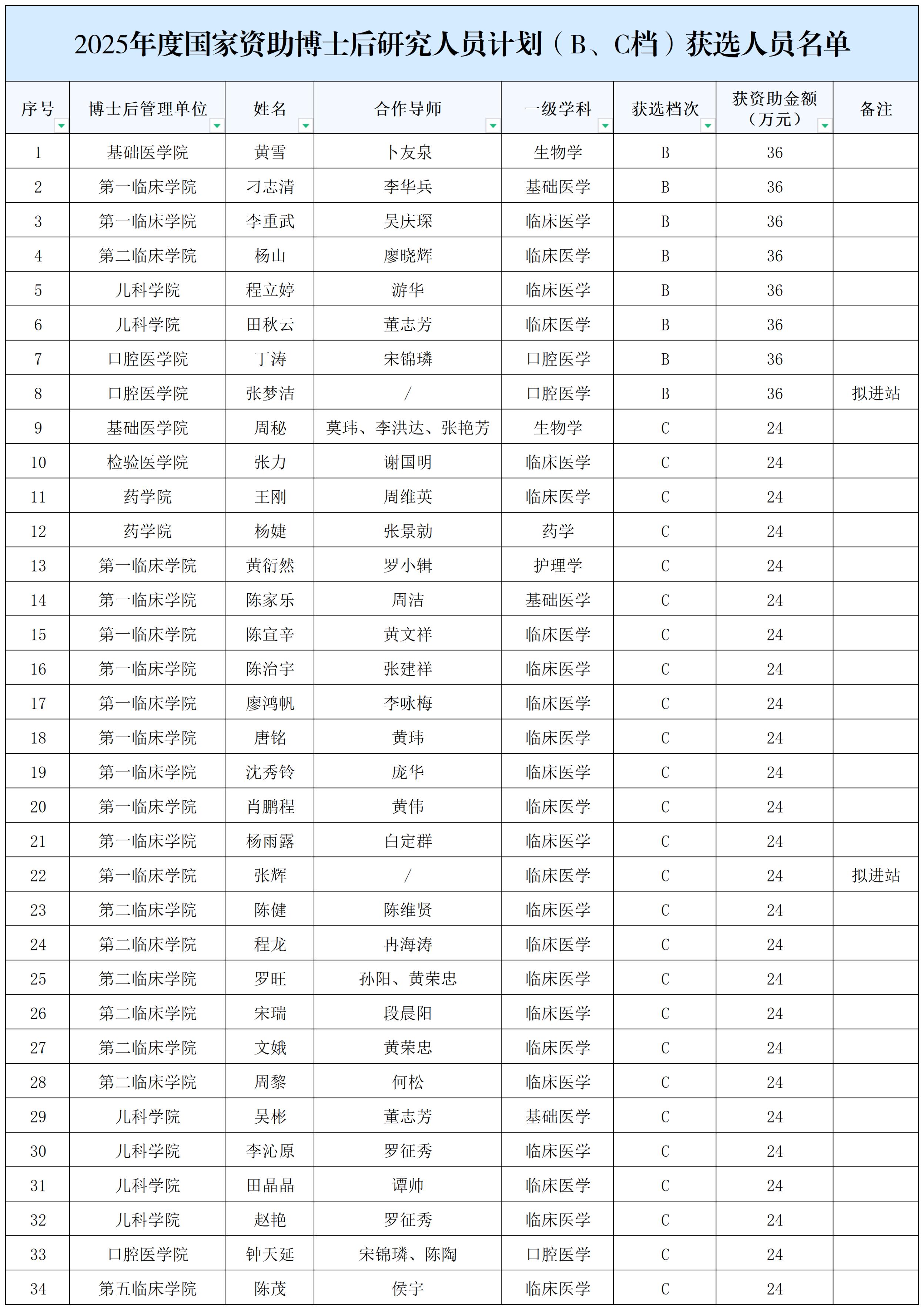 近日,全国博士后管委会办公室和中国博士后科学基金会印发了《2025年度国家资助博士后研究人员计划(B、C档)获选结果的通知》(博管办〔2025〕90号),AB平台黄雪等34名博士后获选,获选人数比去年同期增长78.95%,为历史最好成绩。