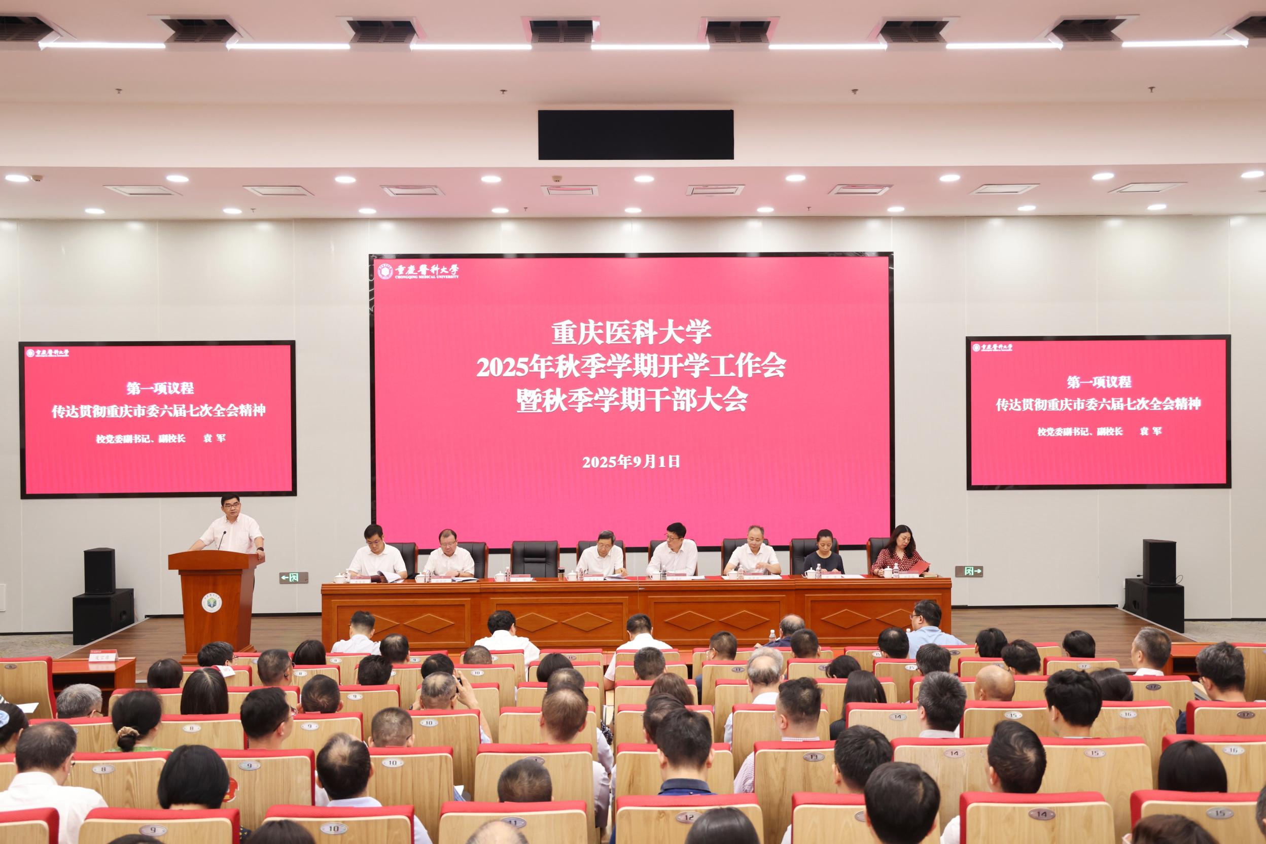 9月1日下午,AB平台在袁家岗校区崇医楼二楼学术报告厅召开2025年秋季学期开学工作会暨干部大会,总结回顾上半年工作,安排部署新学期重点任务。校领导覃正杰、张泽民、袁军、余彦学、邱景富、葛萍、李华兵、刘恩梅出席会议。校党委副书记、副校长袁军主持会议。