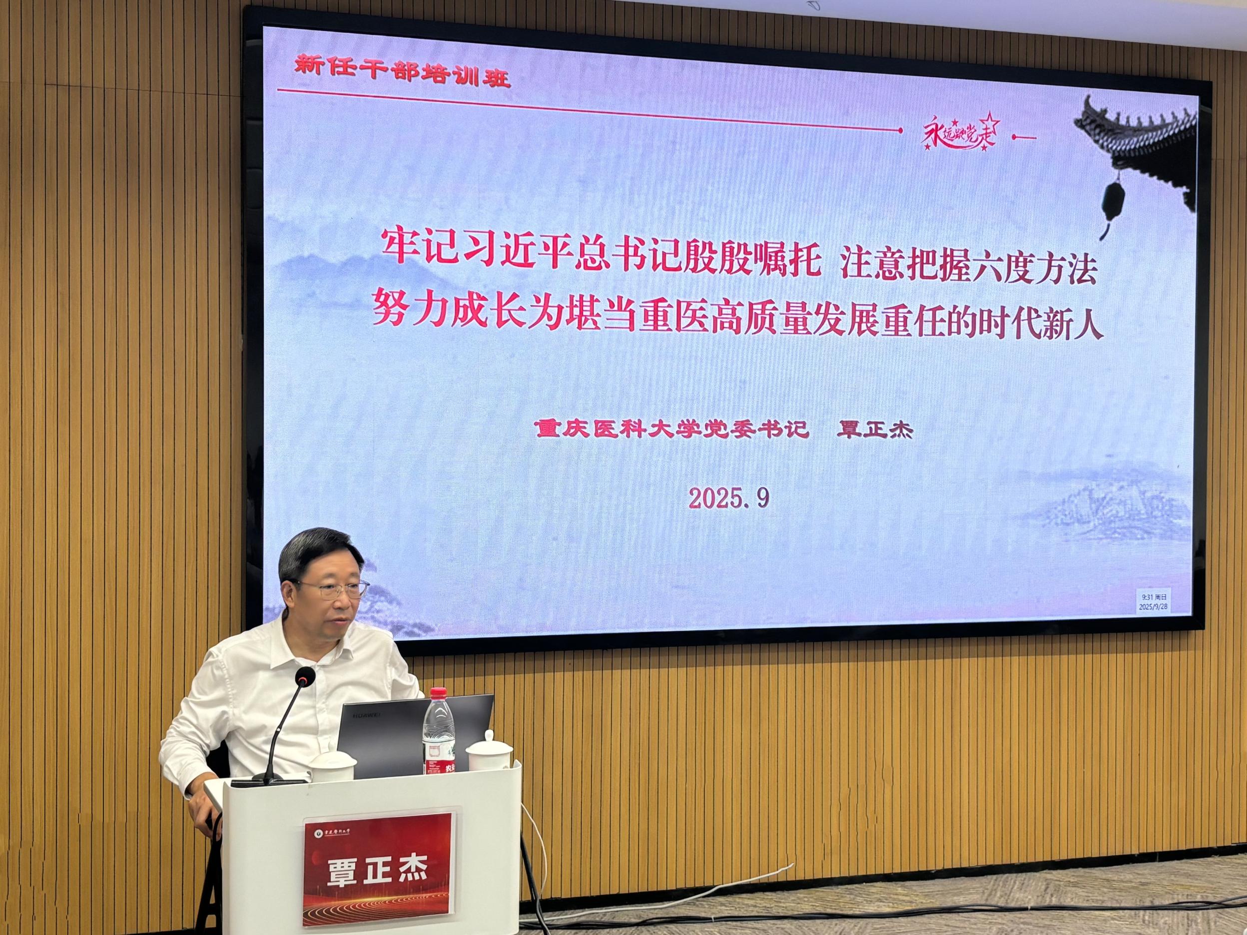 校党委书记覃正杰带头授课,围绕“牢记习近平总书记殷殷嘱托,把握六度成长方法,努力成长为堪当重医高质量发展重任的时代新人”这一主题,阐述了对年轻干部的七方面要求,并详细讲解了六度成长方法。同时,他还强调了年轻干部要在重医高质量党建、高质量发展、高效能治理中担当作为,助力大家成为堪当重医高质量发展重任的时代新人。