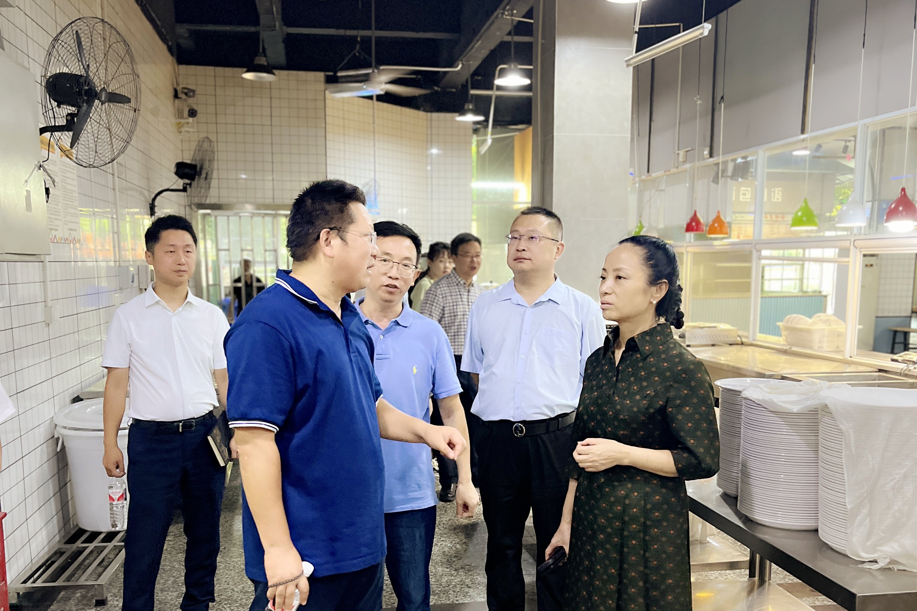 葛萍详细查看并询问了食品安全管理、消防设施设备管理等各环节制度建设和执行情况,强调了食品安全规范和消防设施设备的重要性。她指出,全校上下要高度重视校园安全工作,深入贯彻落实上级要求,进一步强化底线思维和红线意识,扎实落实各项安全防范措施,及时排查和消除安全隐患,全力保障校园安全稳定。余华荣深入了解了校区施工场地的安全管理计划和执行情况,仔细查看了迎新期间各交通节点和迎新场地情况,听取了相关职能部门迎新工作开展进度的汇报,对做好秋季学期迎新安全工作提出了意见和建议。
