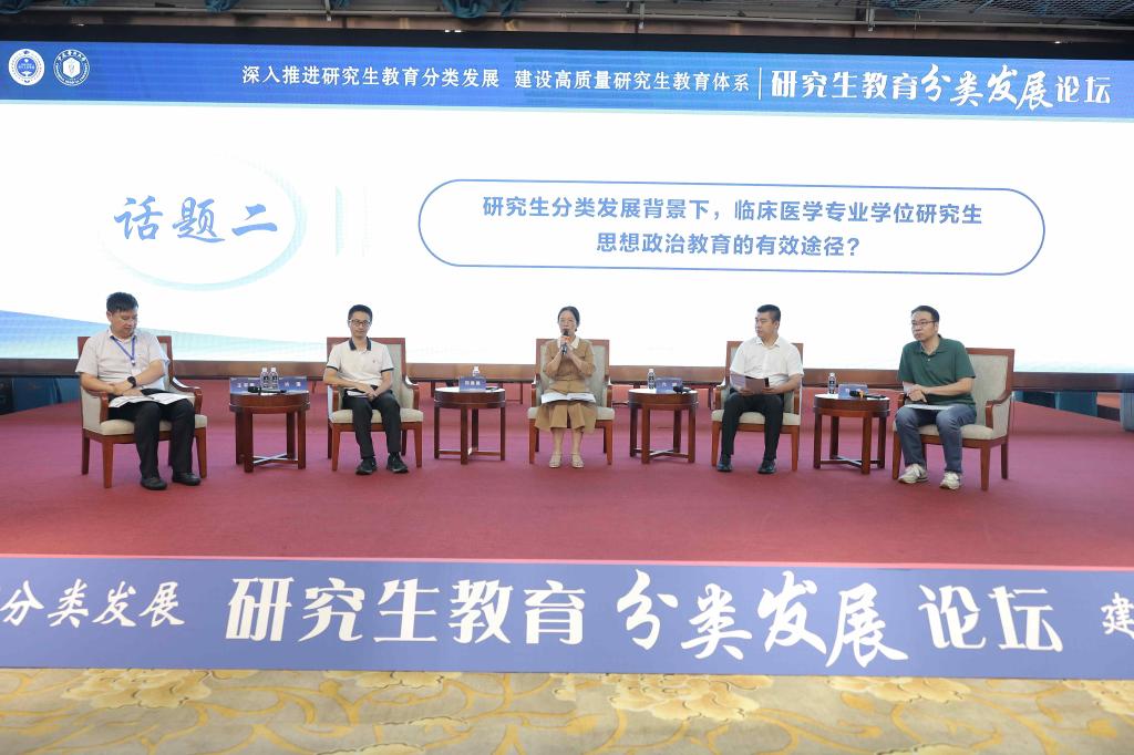 南京医科大学研究生院副院长钱文溢、首都医科大学研究生院副院长马小蕊、天津医科大学研究生院副院长郑祥建、安徽医科大学党委研工部部长潘莉莉分别以“分类培养、创新引领-南京医科大学研究生教育改革探索与实践”“医教协同背景下差异化培养体系的构建”“天津医科大学研究生分类培养的探索与实践”“党建引领,做有温度的研究生思政教育”为题进行了发言,分享了各高校研究生分类培养的宝贵经验。