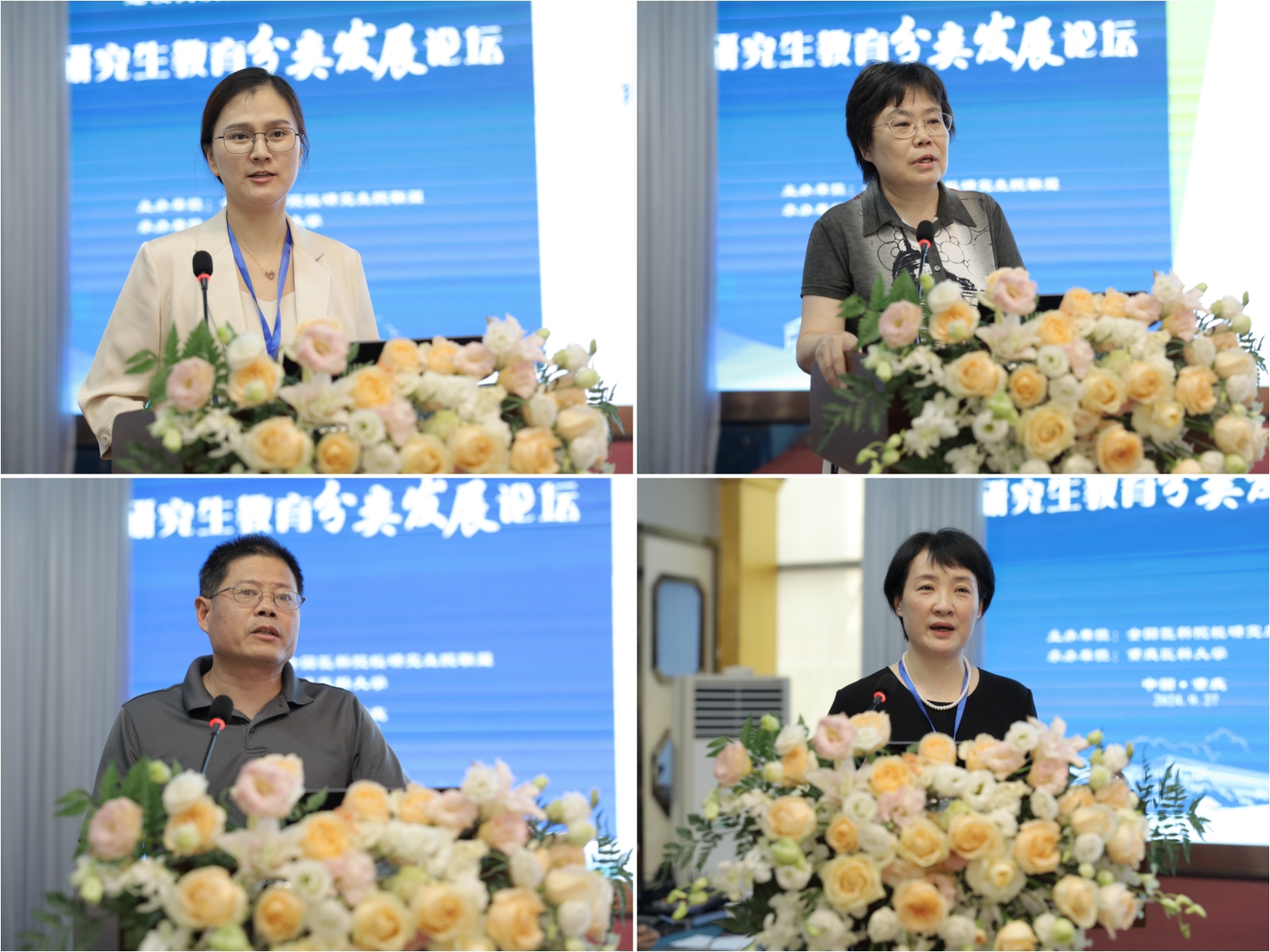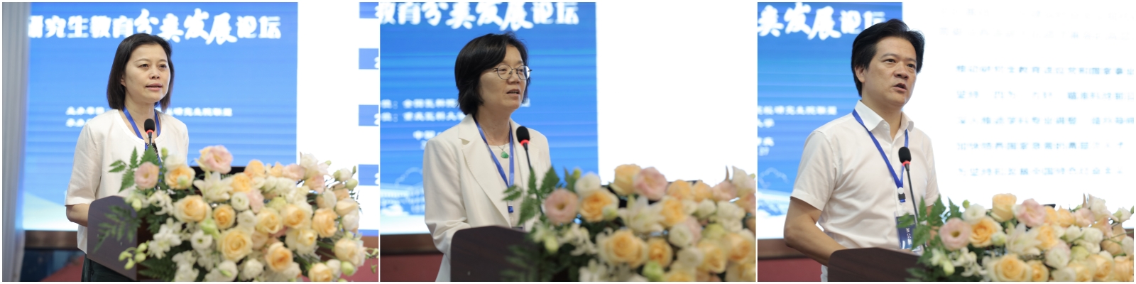 国务院学位委员会办公室(教育部学位管理与研究生教育司)培养质量处一级调研员陆敏出席论坛并讲话。她指出分类发展是国家对研究生教育的明确要求,强调分类发展是提升人才自主培养质量的必然路径,学术学位和专业学位研究生教育同等重要,介绍了两类学位在招生、培养、评价、师资等环节的差异化要求,并预祝本次论坛取得圆满成功。