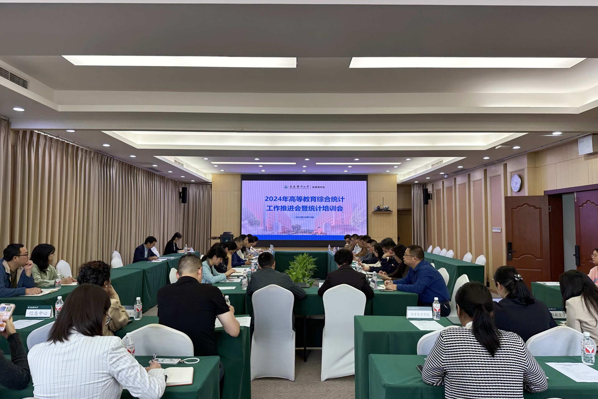 为贯彻落实教育部2024年教育事业统计工作要求和重庆市教育事业统计业务培训会议精神,10月14日上午,AB平台在袁家岗校区第二教学楼316会议室举行2024年高等教育综合统计工作推进会暨统计培训会。校党委常委、副校长余华荣出席会议并讲话,发展规划处处长陈怡婷主持会议。