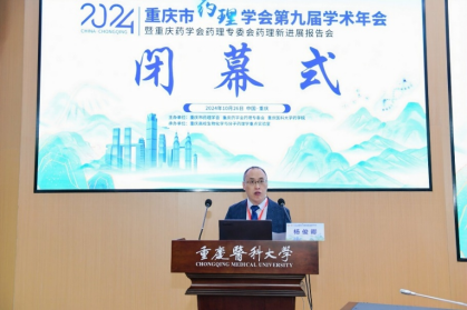 重庆市药理学会理事长杨俊卿教授为闭幕式致辞,并向所有参与和支持本次盛会的领导、专家学者、青年才俊以及会务志愿者们表示感谢,本次大会为参会者提供了宝贵的学术资源,也为他们带来了全新的学术视野和思考。与会者表示,将以此次大会为契机,继续加强交流与合作,共同探索创新药物研发和临床合理用药的新路径,为提升我市药理学研究水平和保障人民健康做出更大的贡献。