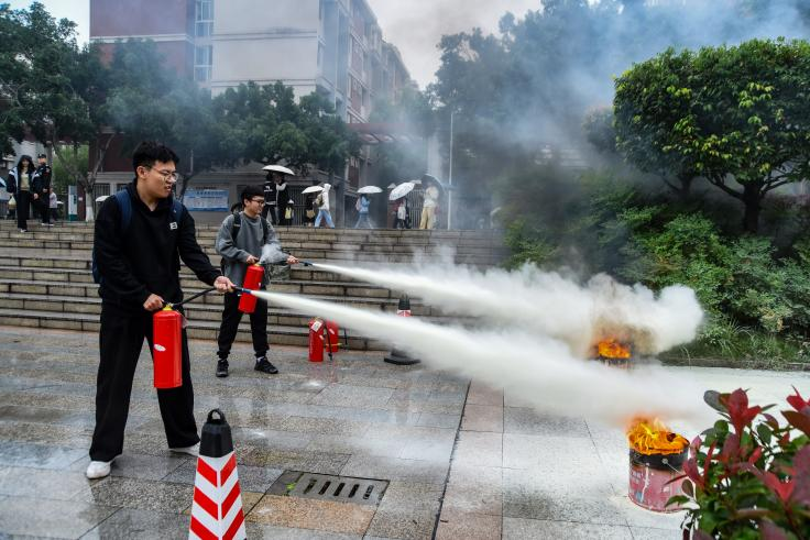 重庆市利民防火培训中心的郑豪教官为师生们详细介绍了灭火器的正确使用方法,以及火场自救与逃生的关键知识。在校党委保卫部(保卫处)的组织下,师生们模拟了火灾现场的应急疏散演练,微型消防站的安保队员迅速响应,展开灭火救援行动。师生们还亲身体验了模拟火场逃生棚及现场灭火操作。
