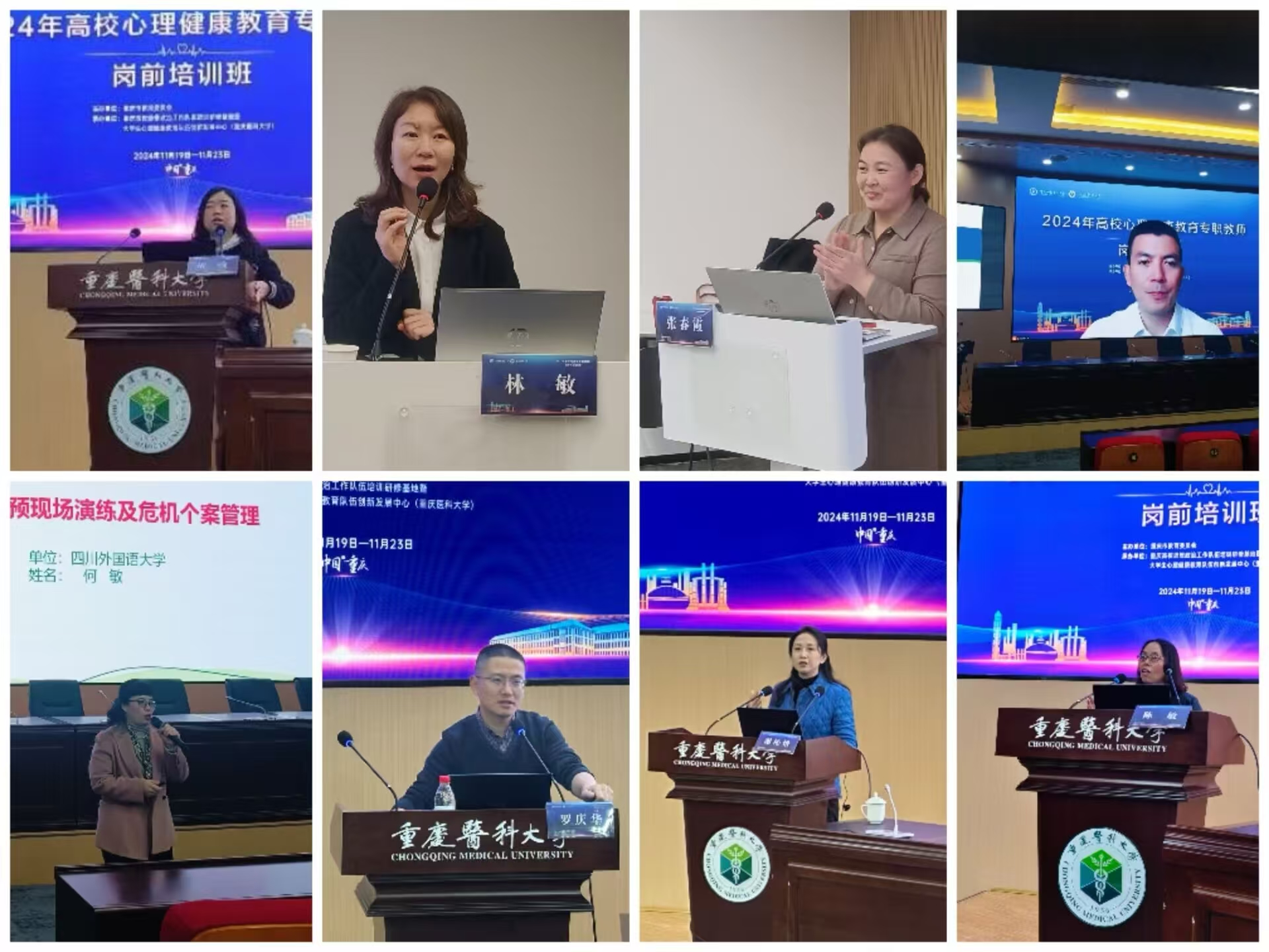 11月19-24日,为深入学习贯彻习近平新时代中国特色社会主义思想,学习贯彻党的二十届三中全会和全国教育大会精神,创新推动新时代高校心理健康教育工作,由重庆市教育委员会主办,重庆高校思想政治工作队伍培训研修基地暨大学生心理健康教育队伍创新发展中心(AB平台)承办的2024年高校心理健康教育专职教师岗前培训班顺利举行。