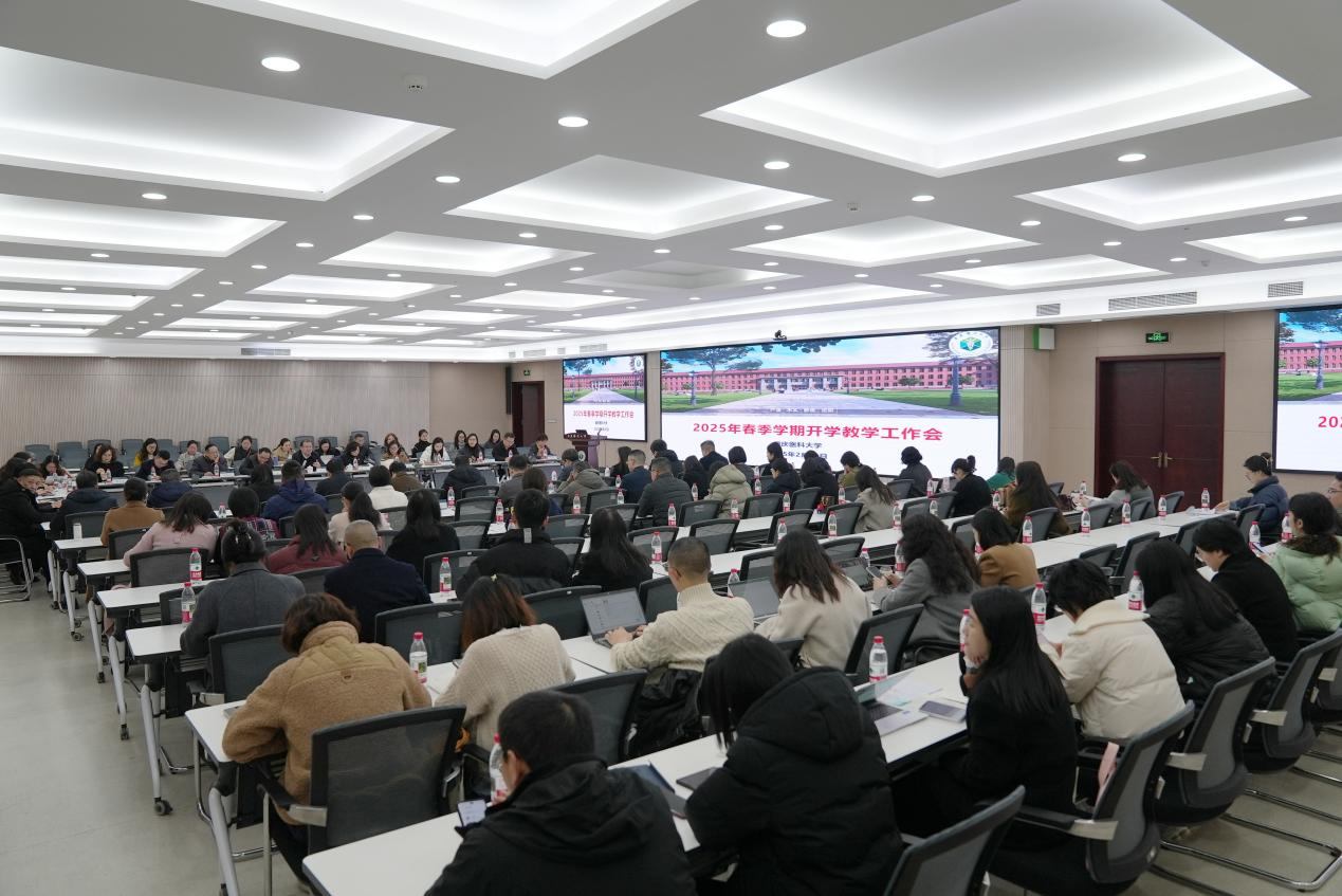 教务处副处长陈戈针对开学教学运行、学籍学位、专业建设、审核评估、质量控制、教学改革等方面的工作进行了通报和强调,并针对2025版本科培养计划修订进行政策解读和工作强调。教务处副处长叶琳从课程、教材建设、实践教学、教师发展、拔尖人才培养、招生工作等方面进行了工作通报及安排。