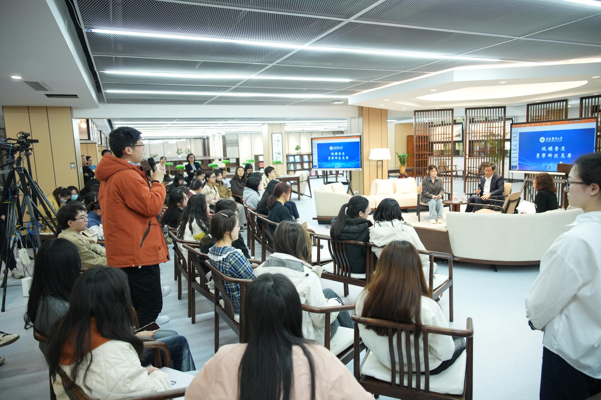在互动环节,现场师生代表踊跃提问。李华兵对学生的职业生涯规划、人生价值取向选择及学生对生命科学研究及成果运用相关的问题逐一解答。