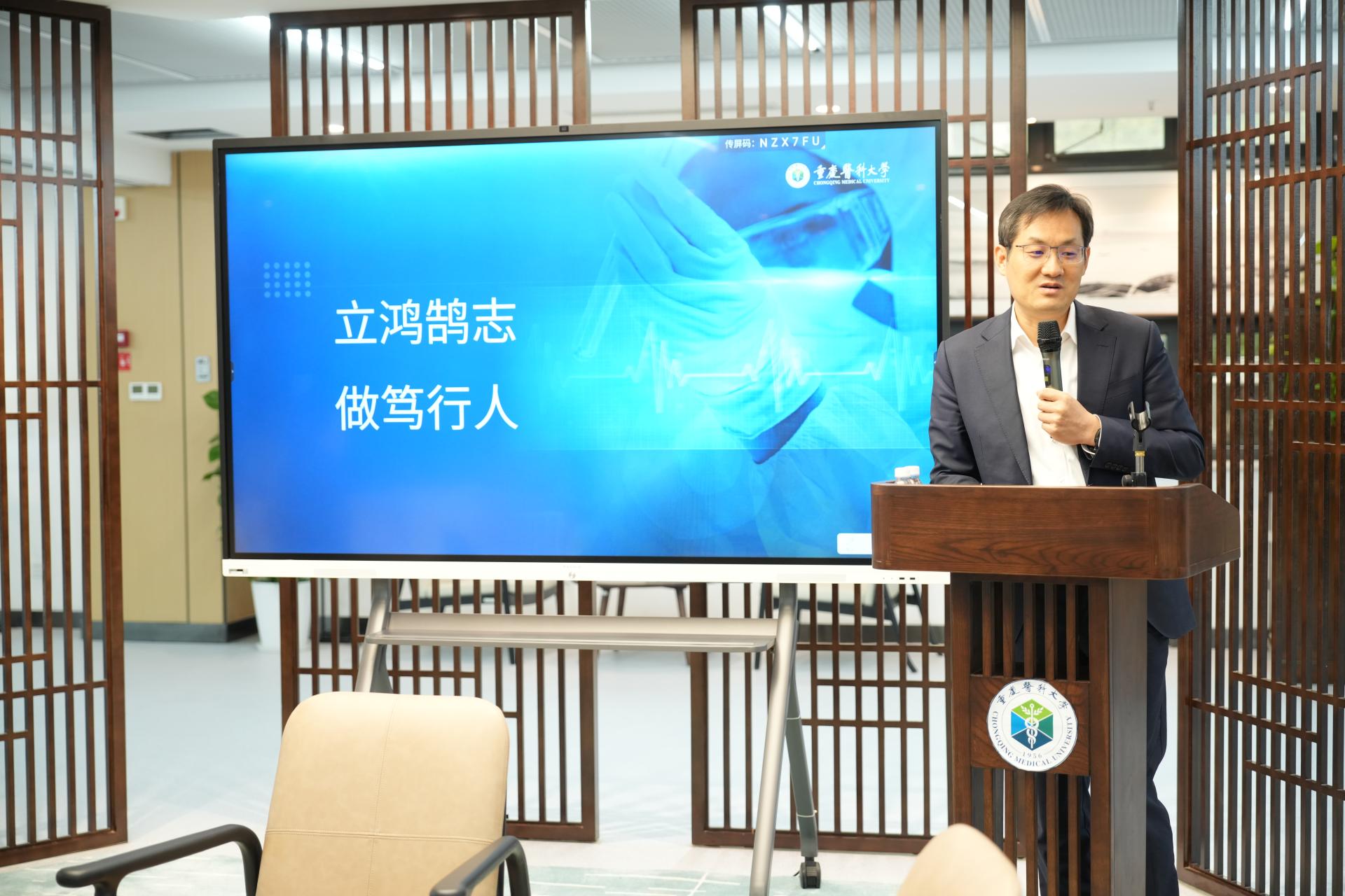 李华兵以自身求学、工作经历为例,分享了他从大学时的迷茫,到硕士阶段明确科研志向,再到出国深造面临的挑战,以及回国后工作的心路历程,讲述了自己作为医学生克服重重困难、在科研道路上不断前行的奋斗足迹。他以“五个五原则”和“1万小时定律”勉励青年学生不断成长,寄语师生“立鸿鹄志 做笃行人”,将自身对医学生创新与成长的经验与思考倾囊相授。李华兵围绕科研方法、目标确立、成果转化等方面,在研究方向、科研思路上对医学生提出了专业建议,指出要平衡科研的创新性与可行性,切实提升科研素质,将习近平总书记对科研工作者“四个面向”的殷殷嘱托播撒在人类崇高医学事业的沃土上。
