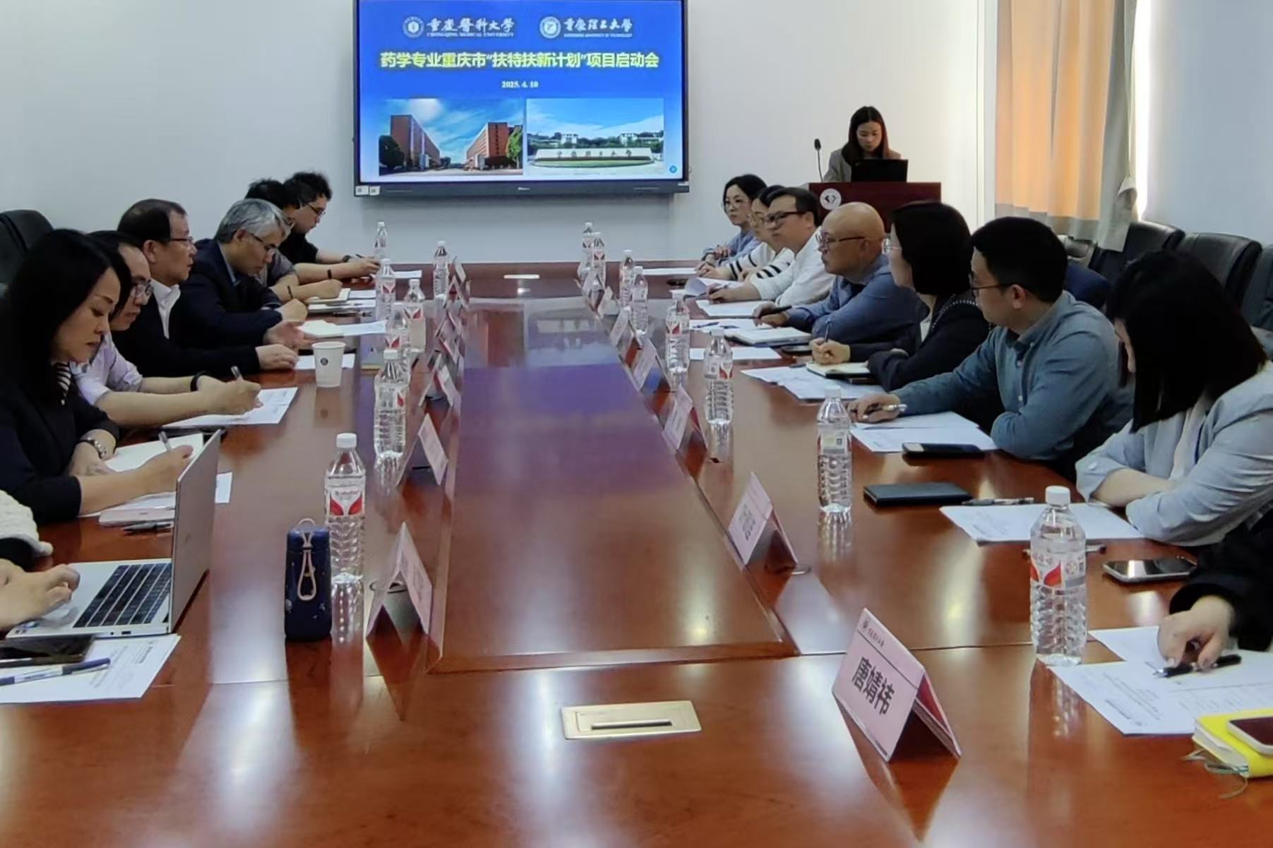 4月11日下午,AB平台与重庆理工大学在AB平台药学院会议室举行“药学专业扶特扶新计划”启动会。我校副校长邱景富、教务处副处长陈戈、药学院院长党永军;重庆理工大学药学与生物工程学院副院长王远强、药学系主任娄洁及相关教师代表参加本次会议。会议由我校药学院副院长邱红梅主持。