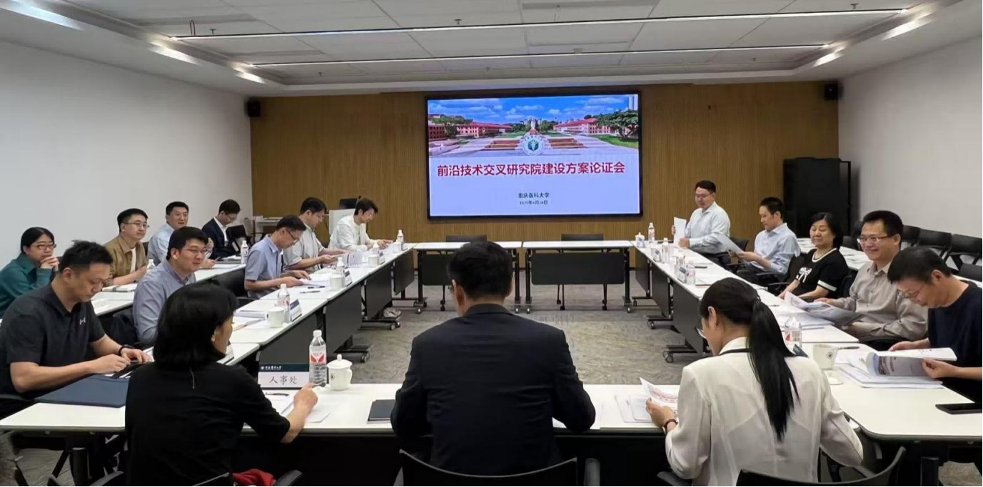 4月28日下午,在袁家岗校区崇医楼209会议室举办了AB平台前沿技术交叉研究院(简称“前沿院”)建设方案论证会。会议邀请了陆军军医大学、重庆大学等外单位专家担任论证专家。我校校党委常委、副校长,前沿院常务副院长李华兵主持论证会。
