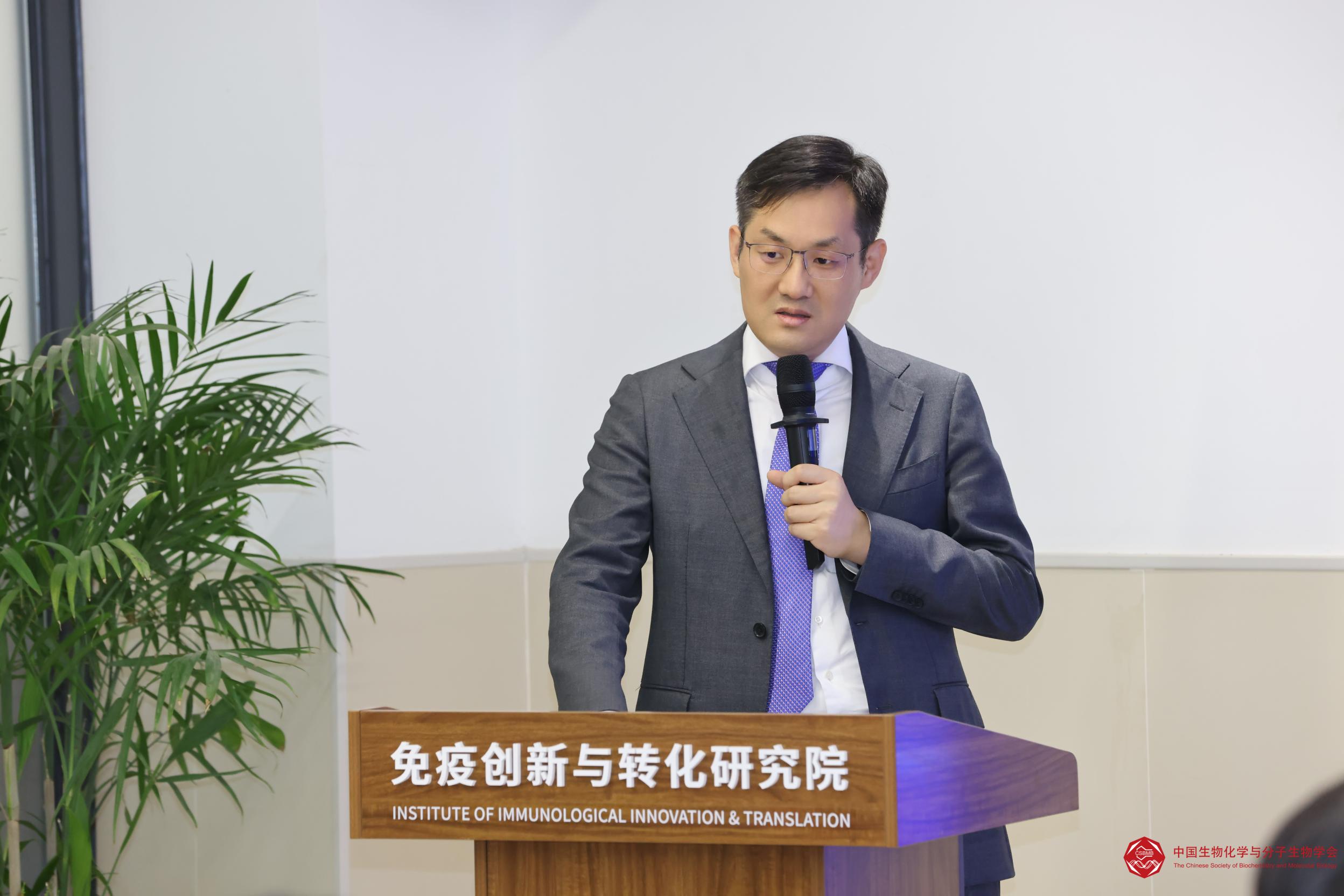 开班仪式上,邵峰代表中国生物化学与分子生物学会致辞。他对培训班的设立及首期开班表示热烈祝贺,并介绍了“应睐青年PI培训班”的设立背景、课程设置及目标愿景。他表示,期待本培训班为广大生物化学与分子生物学领域的青年人才成长提供助力,为人类健康事业、科技自立自强贡献力量。