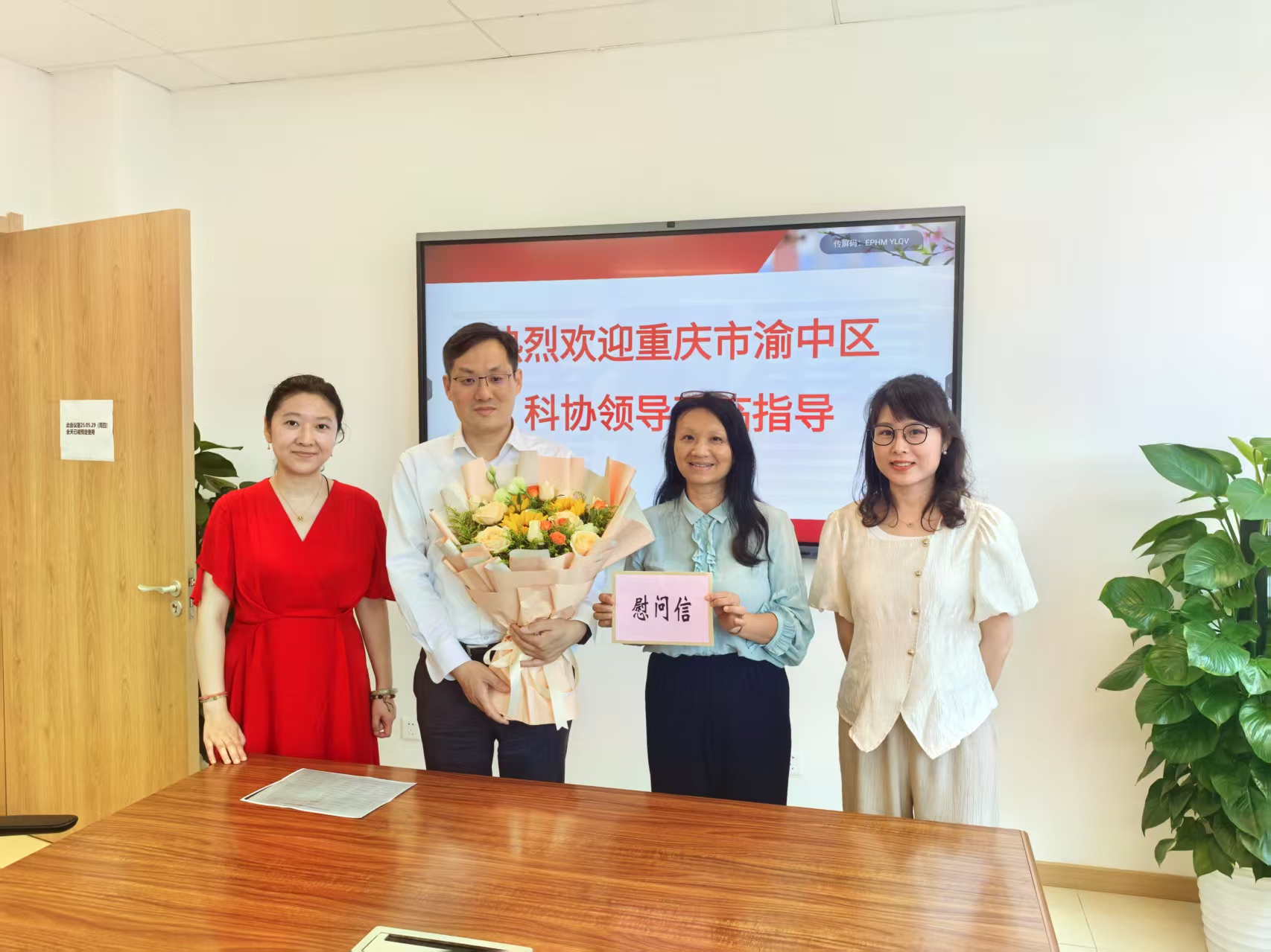 在第九个“全国科技工作者日”来临之际,为进一步弘扬科学家精神,营造尊重知识、尊重人才的良好氛围,5月29日上午,渝中区科学技术协会主席朱红率慰问组到我校走访慰问科技工作者代表,向他们致以节日的问候和崇高的敬意。校党委常委、副校长李华兵接待慰问组一行。