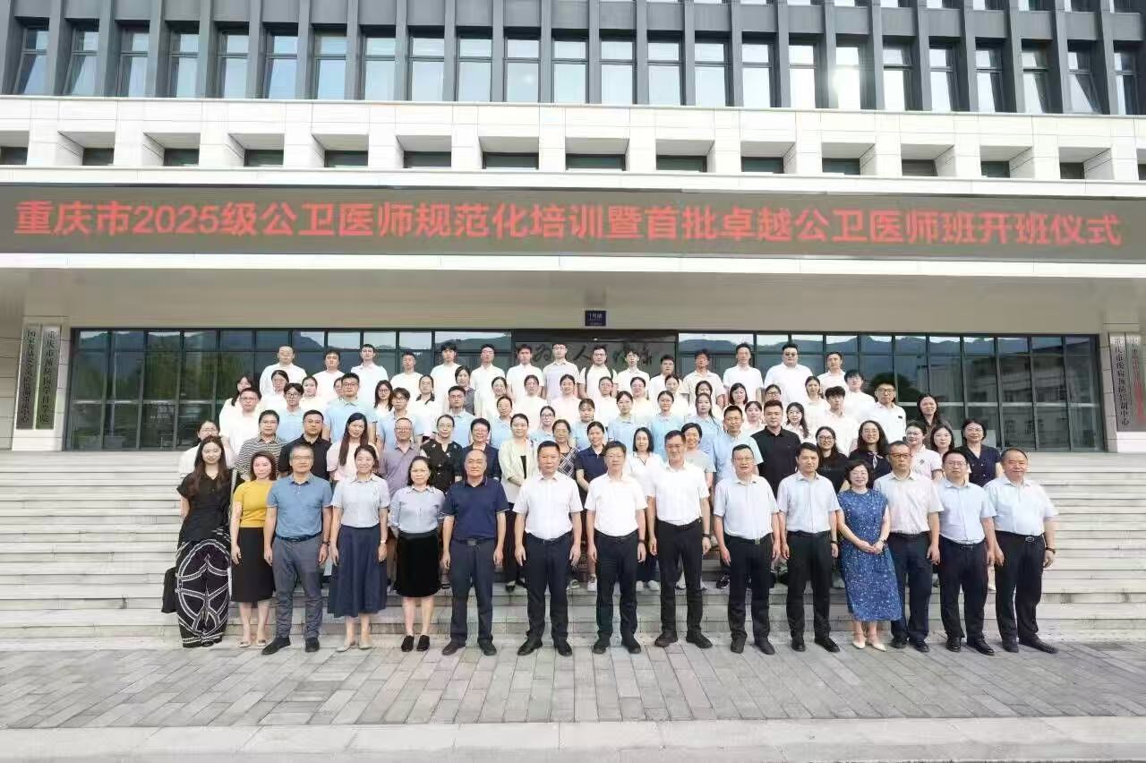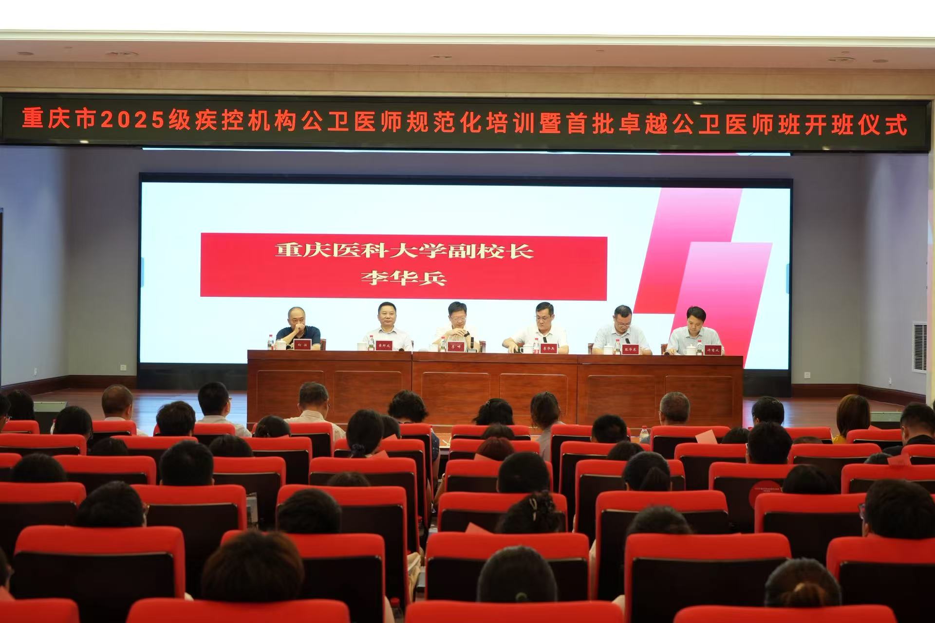 9月11日,重庆市2025级公卫医师规范化培训暨首批卓越公卫医师班开班仪式举行。市卫生健康委党委副书记,市疾控局党组书记、局长李畔,AB平台党委常委、副校长李华兵出席开班仪式。重庆市疾控局、AB平台、重庆市疾控中心、重庆市卫生人才中心等单位相关人员和公卫医师规范化培训学员近100人参加。