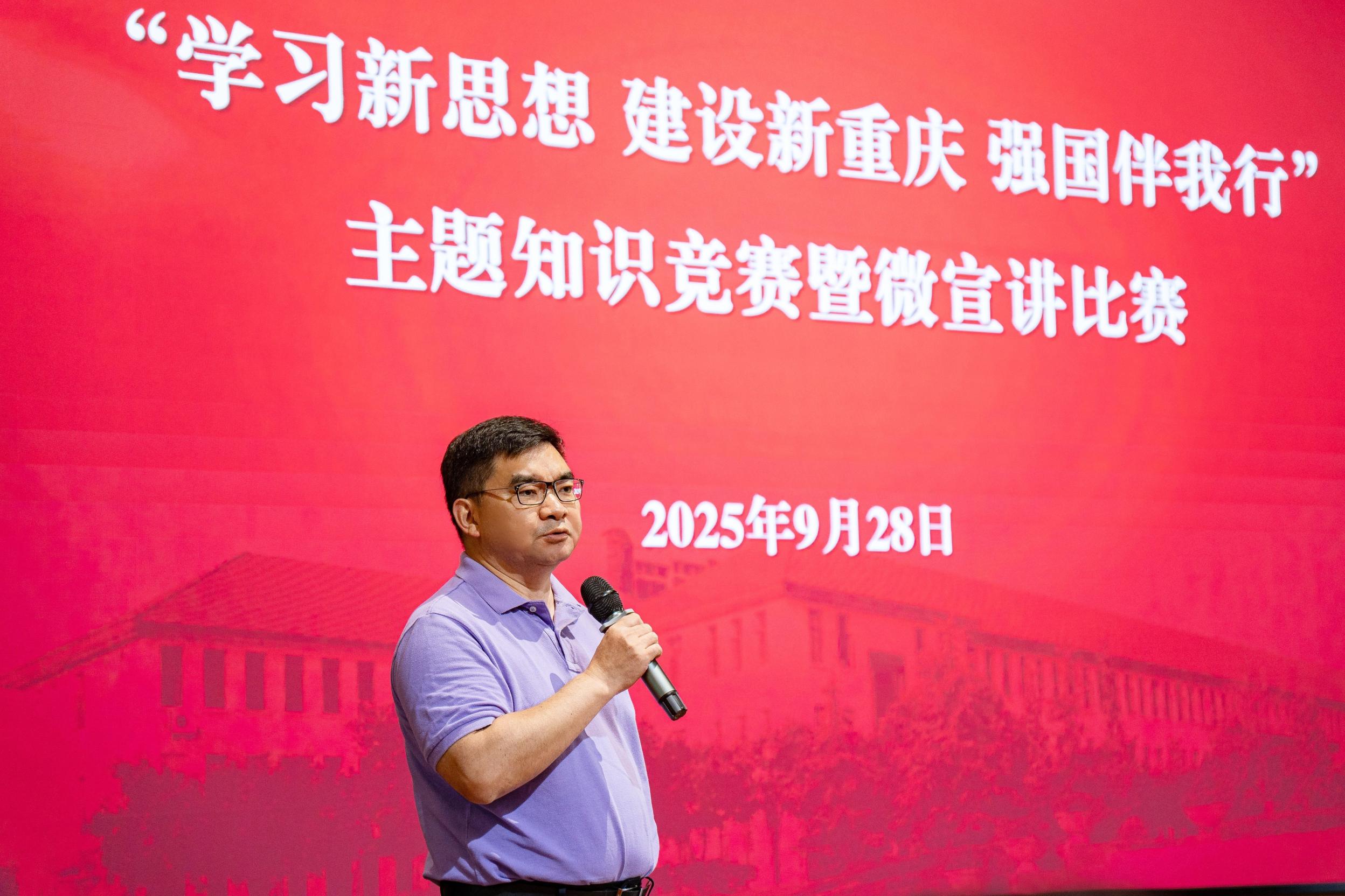 为深入学习贯彻习近平新时代中国特色社会主义思想,贯彻落实习近平总书记视察重庆重要讲话重要指示精神,推动党的创新理论更加深入人心,9月28日下午,AB平台在袁家岗校区举行“学习新思想 建设新重庆 强国伴我行”主题知识竞赛暨微宣讲比赛,各直属党组织选拔推荐的24名选手参加比赛。