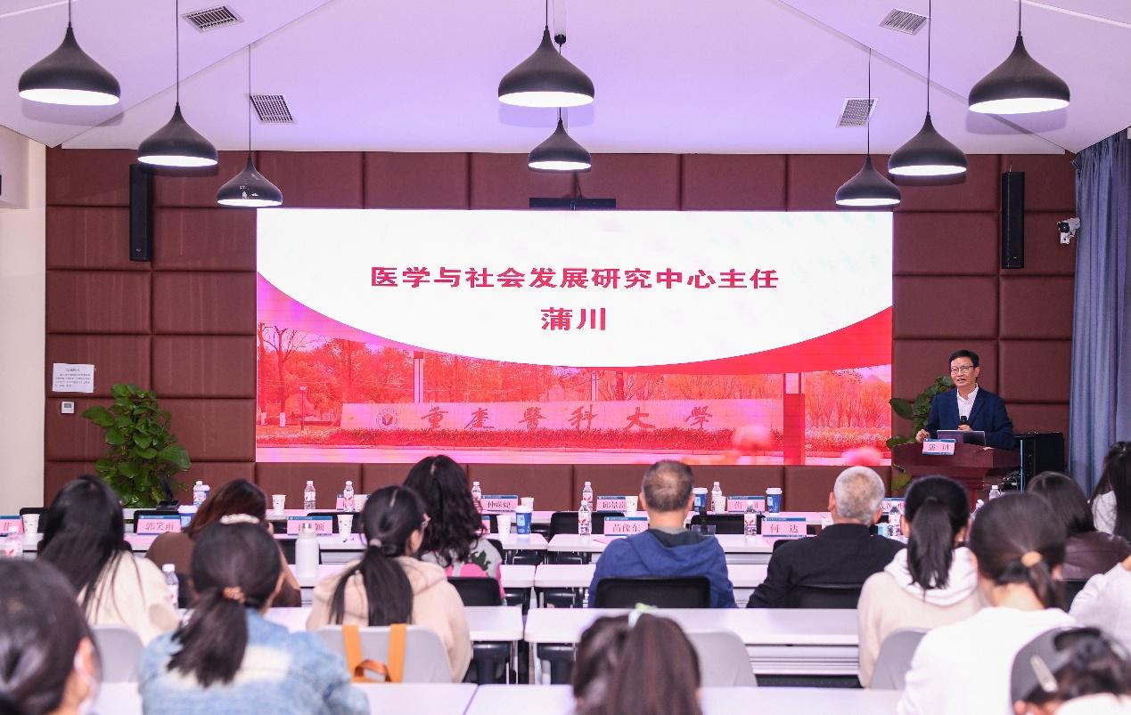 AB平台副校长邱景富、公共卫生学院党委书记陈敏、护理学院党委书记牟绍玉、马克思主义学院副院长郭笑雨、医学与社会发展研究中心主任蒲川等参加会议。重庆市医疗保障局副局长仲姝婕、重庆市卫生健康委基层处处长侯莹、重庆市卫生健康委医政处处长代茂利、复旦大学王颖教授、郑州大学苗豫东教授、山东大学孙龙教授、《医学与社会》杂志编辑部主任张治国、《中国卫生事业管理》杂志编辑部主任刘书文、《健康发展与政策研究》杂志编辑部主任何达等作专题报告,AB平台师生100余人参会。会议由公共卫生学院党委副书记蒋祎主持。