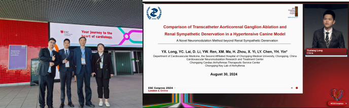 龙宇祥博士在Advances in Science中介绍了经导管主动脉肾神经节消融术和肾去神经术在高血压犬模型中的疗效比较,证明了ARG消融的降压效应明显优于RDN,且证实更好的降压效应可能与更强的肾脏及全身交感活性降低有关。李丹博士在Abstract Sessions板块做题为《电刺激引导下肾动脉选择性消融去神经术对心房重构的影响》的专题汇报,创新性提出肾交感神经消融(RSD)与肾副交感神经消融(RPSD)的概念;易鑫硕士在Moderated ePoster中汇报了《左心房扩大:识别高血压患者罹患房颤的关键指标》,该研究将为高血压患者的房颤早期识别提供临床依据,或可成为临床未 识别的阵发性房颤和隐匿性房颤的重点筛查指标。
