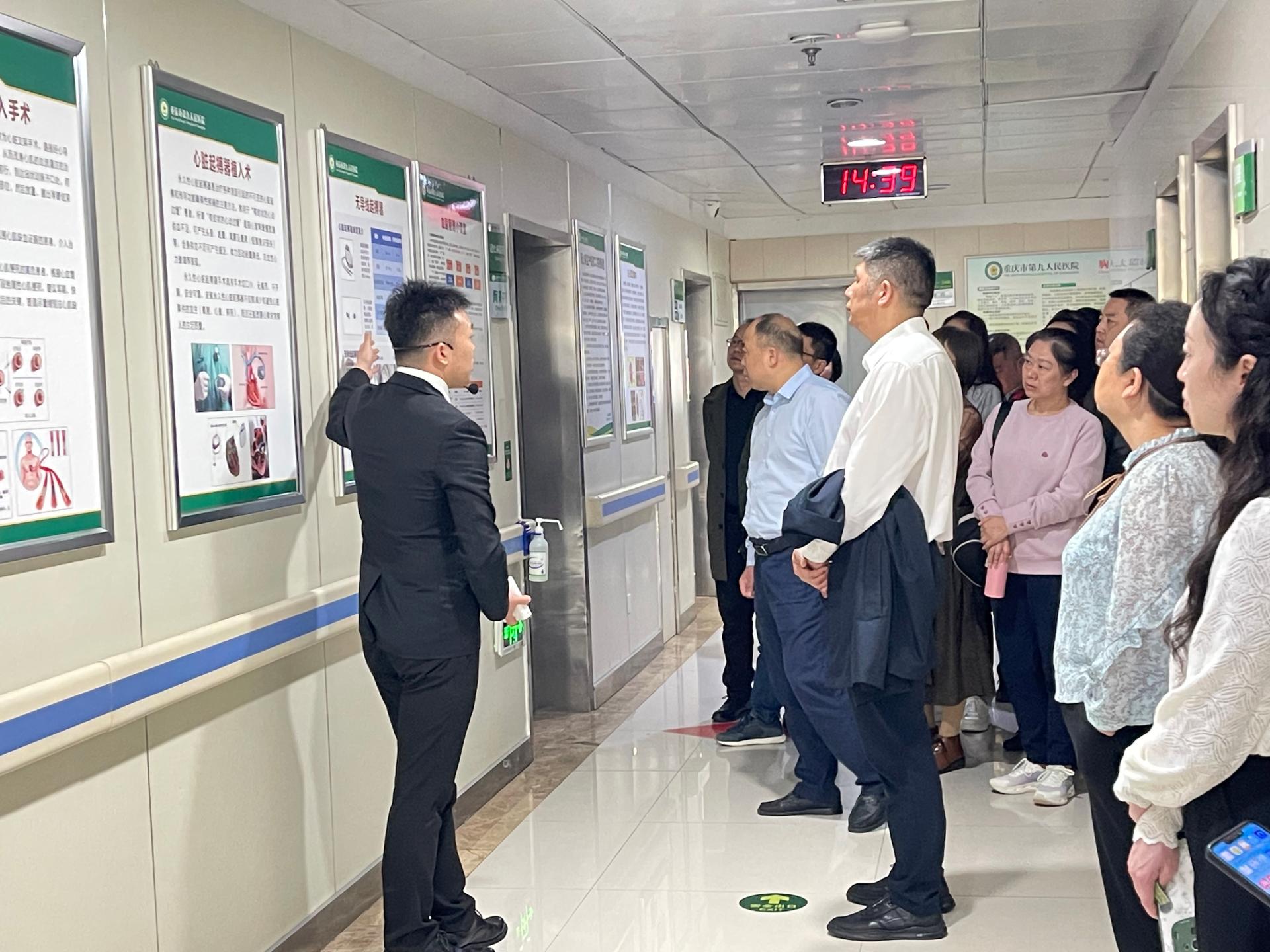 周万明一行先后参观考察了公共卫生科、心血管内科、感染科等地。心血管内科向考察团介绍了附属北碚医院长期以来通过多学科协作、疾病早期筛查、心脏康复计划以及定期随访和监测、为基层医疗机构开展远程会诊等方式,医防协同,参与心血管疾病预防和诊疗的具体措施与成效。医院还通过健康科普,将医防融合落实到健康教育行动中的探索与实践。感染科着重围绕医院重大传染病“防-治-管”一体化流程及多年来医院积极致力于特殊场所丙肝微消除、艾滋病感染者治疗随访全覆盖等方面所做的工作和初步取得的成效进行了介绍,就医院持续加强信息化建设,与北碚区疾控互联互通、联防联控,不断完善医防融合的整体工作情况与考察团进行了交流。