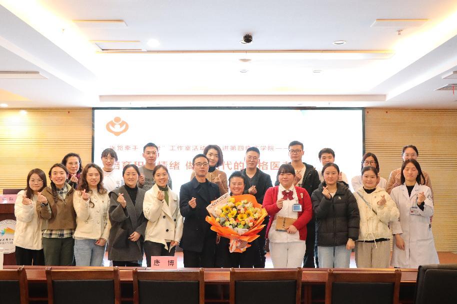 11月28日下午,第四临床学院携手 “五老” 工作室,在门诊五楼多媒体会议室举办了一场“培育积极情绪 做新时代的合格医者”的主题讲座。会议由党委委员、副院长唐博主持,学院各党支部和团支部委员及在院研究生、规培生、实习生共100余人参加了本次讲座。