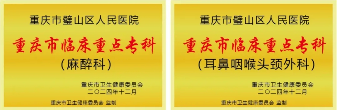 近日,附属璧山医院麻醉科、耳鼻咽喉头颈外科顺利通过市级临床重点专科建设项目验收,被评为“重庆市临床重点专科”。