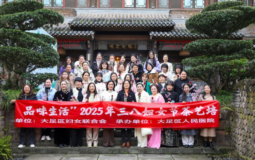 为庆祝第115个“三八”国际妇女节,丰富女职工的精神文化生活,3月6日,附属大足医院妇联举办的“茶香满溢庆三·八,巾帼风采绽芳华”茶艺培训活动在颂棠别院温情开展。