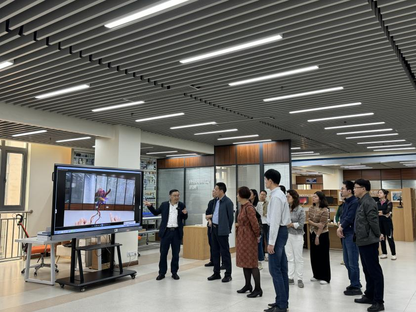 会议伊始,医学信息学院院长赵文龙教授带领公立医院党建研究中心骨干等一行参观医学信息学实验教学中心,生动讲解了中心数字化医院模拟、信息数据处理、智能种植等数字技术应用场景。