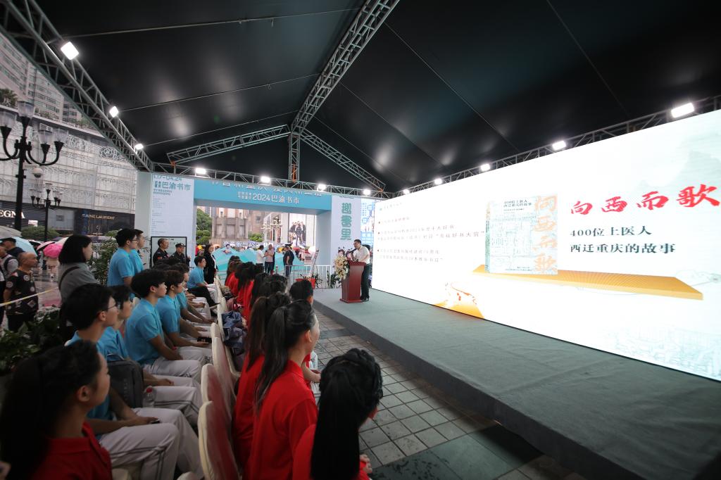4月20日上午,由中共重庆市委宣传部、重庆市新闻出版局、重庆市全民阅读办公室、中共渝中区委、渝中区政府主办,重庆新华书店集团公司、重庆新华传媒有限公司承办,AB平台协办的“近悦远来 书香重庆”2024巴渝书市《向西而歌:400位上医人西迁重庆的故事》阅读分享会在解放碑举行。