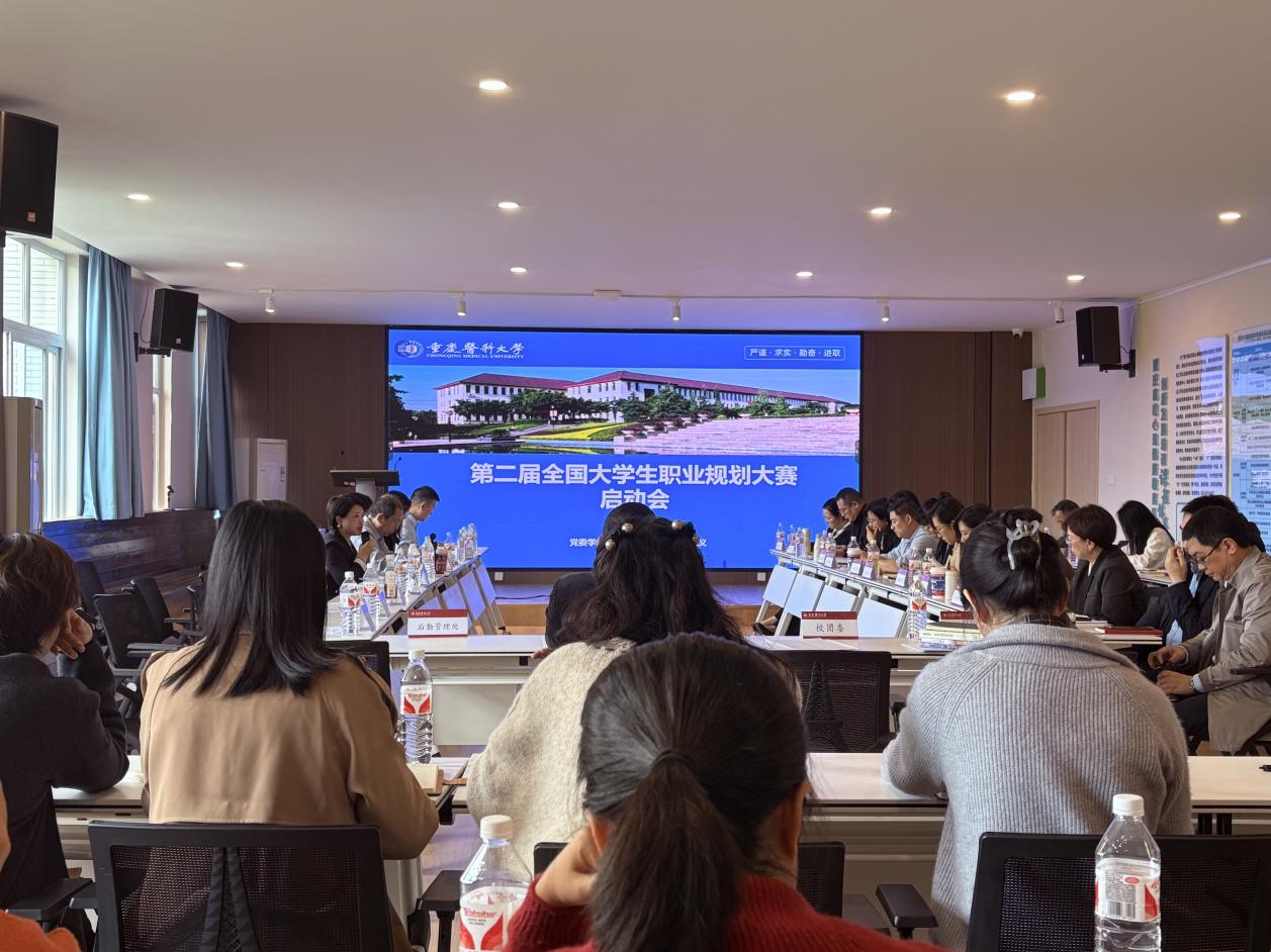 会议第三阶段是大学生职业规划大赛启动会。会上,杨祖义分别从职规大赛介绍、校赛要求和同期活动安排三方面进行介绍,他强调,要通过大赛加强生涯教育和就业指导,促进人才供需对接,服务毕业生就业。杨坤蓉指出,要通过以赛促学、以赛促教、以赛促就,引导大学生树立正确的成长成才观和择业就业观,科学合理规划学业与职业发展,提升就业竞争力。