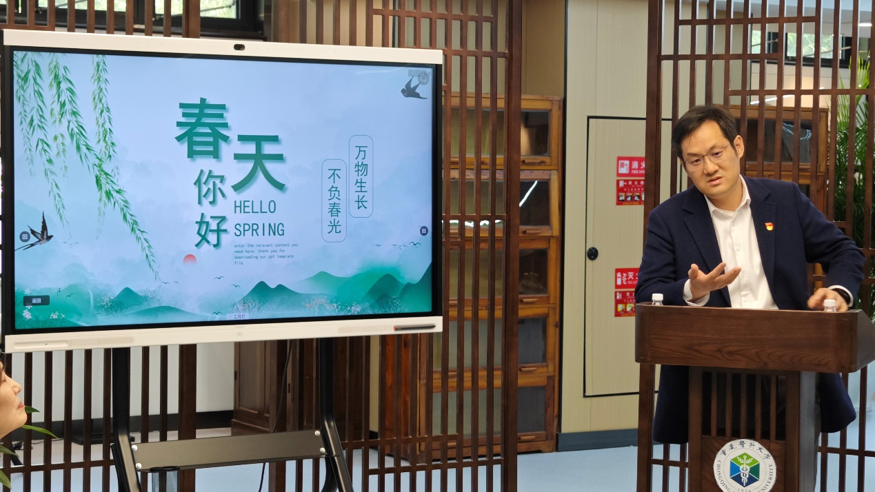 周建荣介绍了2025年春季学期的重点工作,一是进一步加强党支部和工会工作,保障意识形态和消防安全;二是建设特色阅读专区,升级改造视觉标识系统,创新开展档案服务;三是优化查收查引系统,构建AI医学科研文献服务平台;四是加强学科服务,助力AB平台“双一流”建设;五是持续推动资源建设,智慧化构建数字资源体系;六是深化文化育人工作,打造精品讲堂,做好大众科普传播。