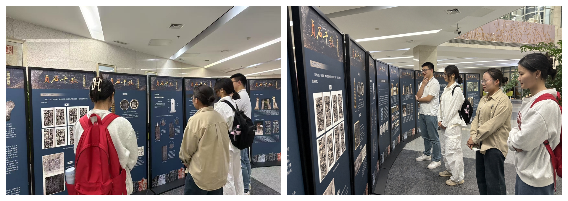 期间,AB平台还引进了由重庆中国三峡博物馆主办的“贞石千秋——巴蜀碑铭展览”,全方位、多角度地呈现川渝两地两千年来的历史风貌,为师生讲述石头上的巴蜀故事。石碑上的文字、图案,与课堂上的瓦当拓印形成立体呼应,让学生们在视触中感受巴蜀文化的厚重。