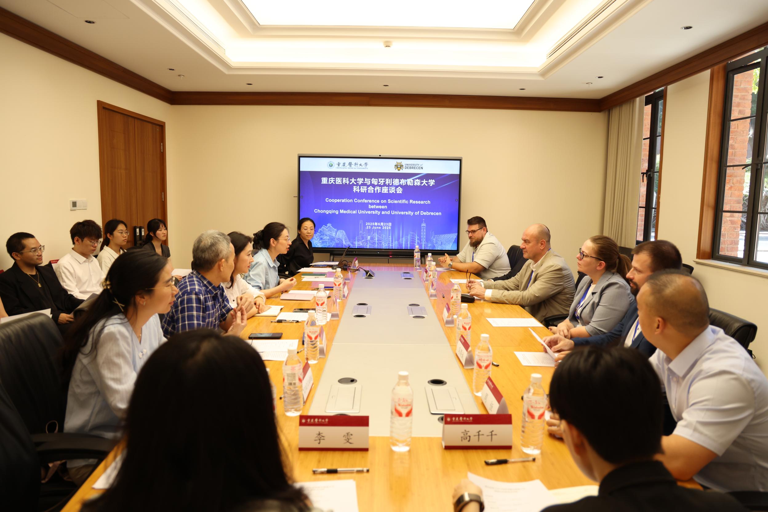 为深化校际合作,提升医学研究国际化水平,6月23日,匈牙利德布勒森大学(University of Debrecen)医学中心代表团一行5人访问我校,双方举行科研合作座谈会,深入探讨医学研究领域合作机遇。AB平台国际合作与交流处副处长张秘、科研处副处长杜慧敏,基础医学院、第二临床学院相关专家教授以及学生代表参加座谈。