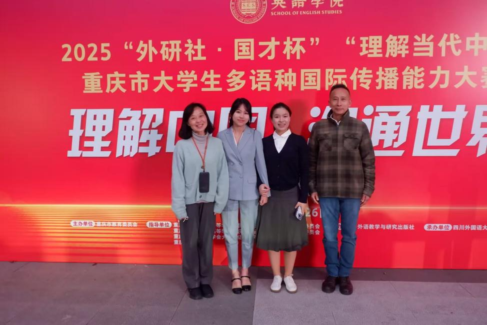 10月26日,由重庆市教委主办的2025年“外研社•国才杯”“理解当代中国”全国大学生外语能力大赛在四川外国语大学圆满落幕。由我校外国语学院教师陈琨、外教Gilbert指导的2023级临床一系“5+3”学生杨田婷获得英语演讲赛项重庆赛区金奖;由外国语学院教师余凌、梅宁琛指导的外国语学院2023级MTI学生车雪佳获得英汉口译赛项重庆赛区金奖,两人将代表重庆参加全国总决赛。