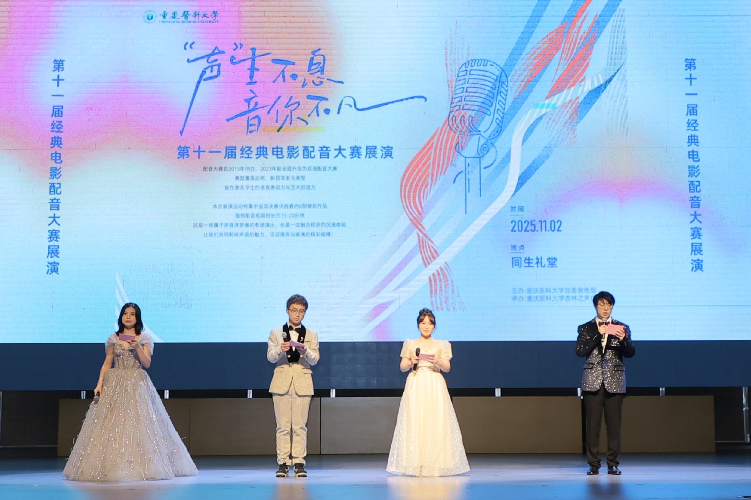 作为校园文化建设的品牌活动,本次配音大赛展演不仅展现了重医学子良好的艺术素养与青春风貌,也是AB平台落实“以美育人、以文化人”理念的生动实践,成为营造高雅和谐校园文化、推进全面育人的重要平台。