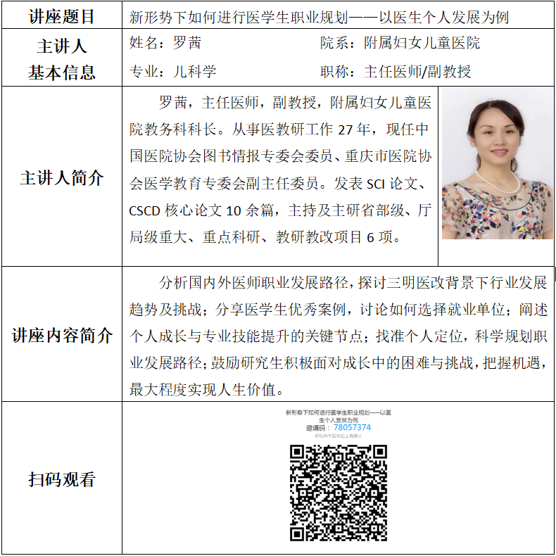 地址:重庆市渝中区医学院路1号