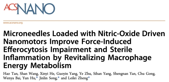 3月2日,我校口腔医学院郑雷蕾教授团队在ACS Nano杂志发表了题为Microneedles Loaded with Nitric-Oxide Driven Nanomotors Improve Force-Induced Efferocytosis Impairment and Sterile Inflammation by Revitalizing Macrophage Energy Metabolism的最新研究成果。